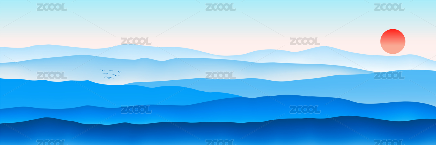 寬幅意境群山夕陽矢量圖