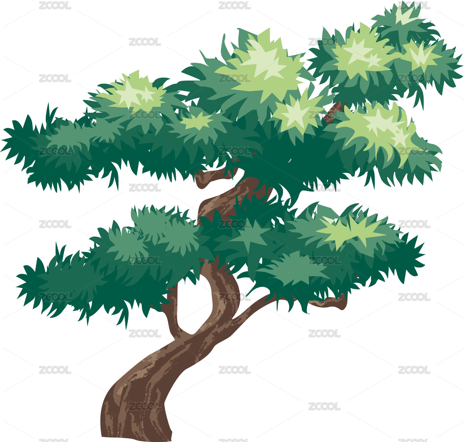 手繪風(fēng)楓樹綠葉大樹景觀樹免扣矢量圖