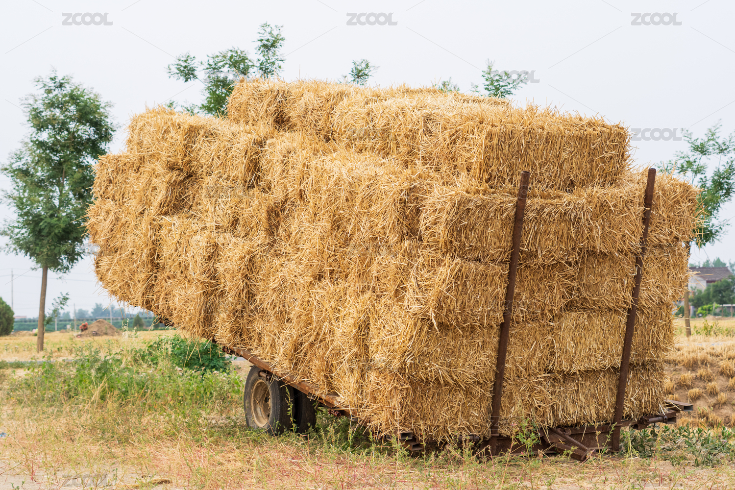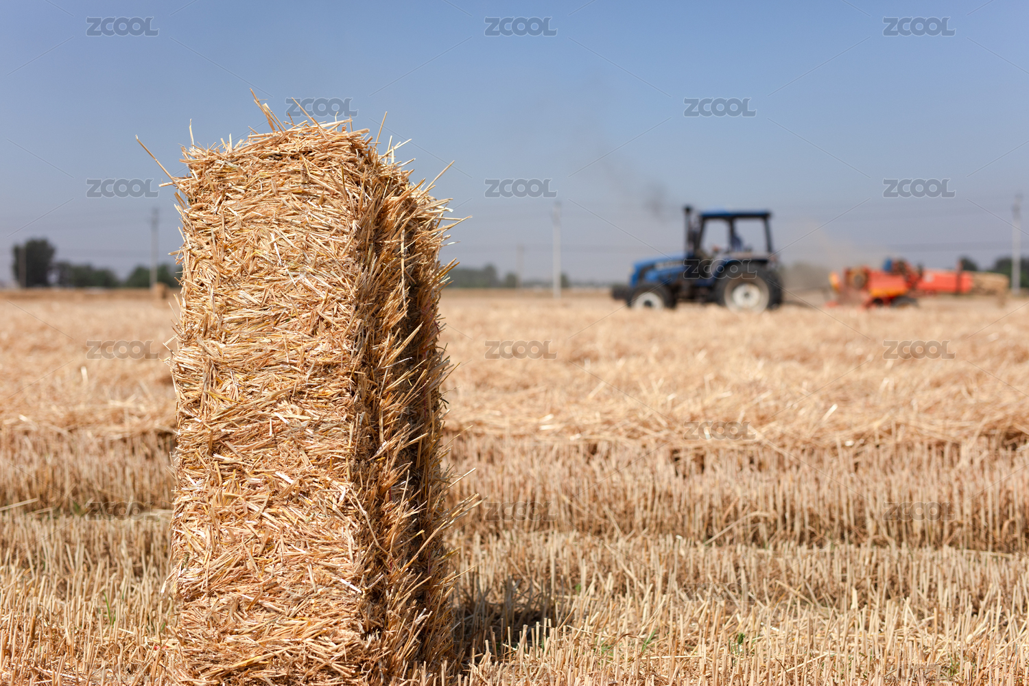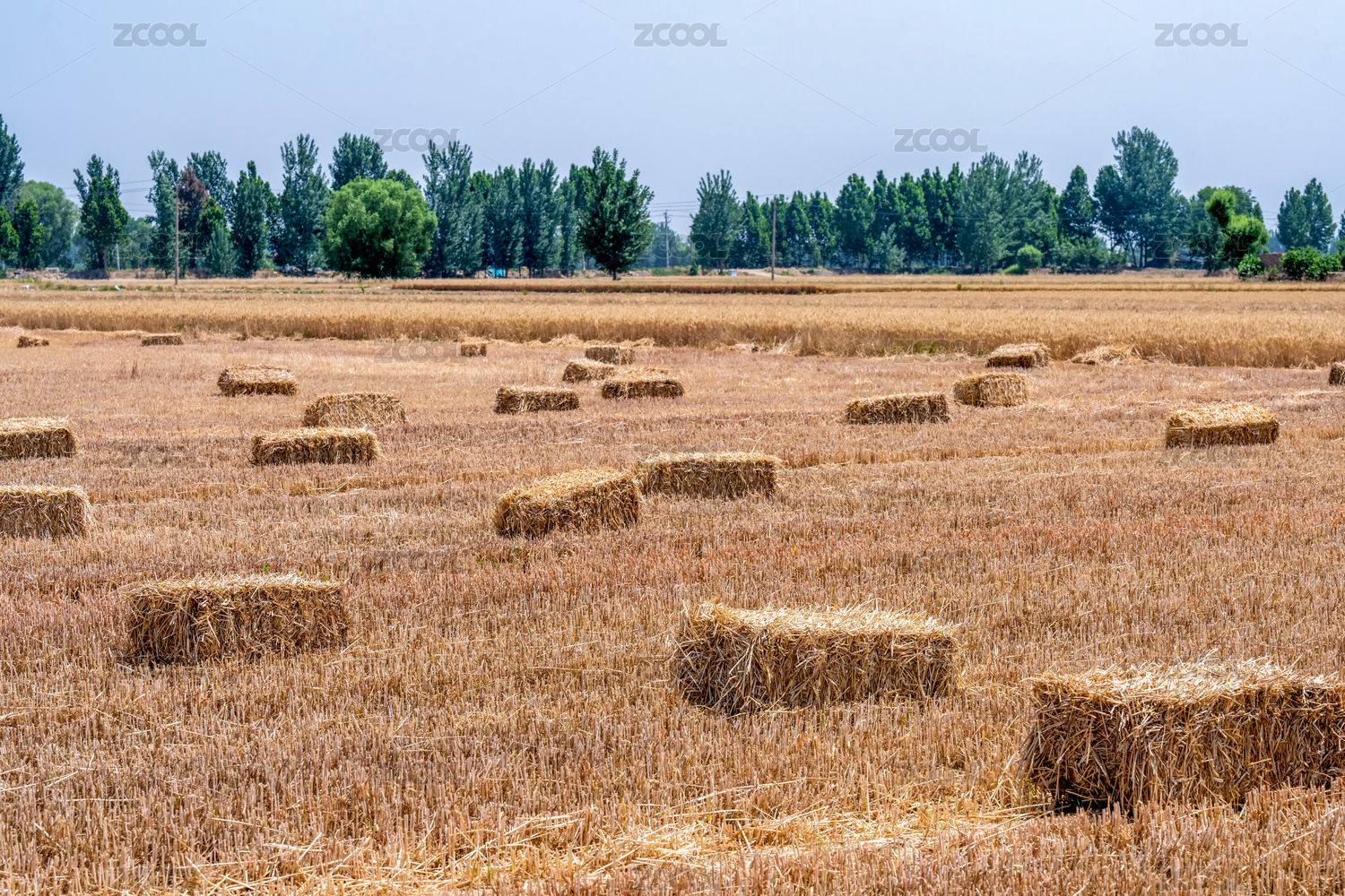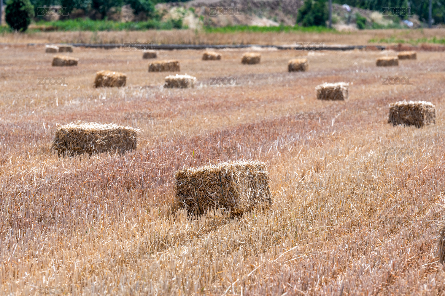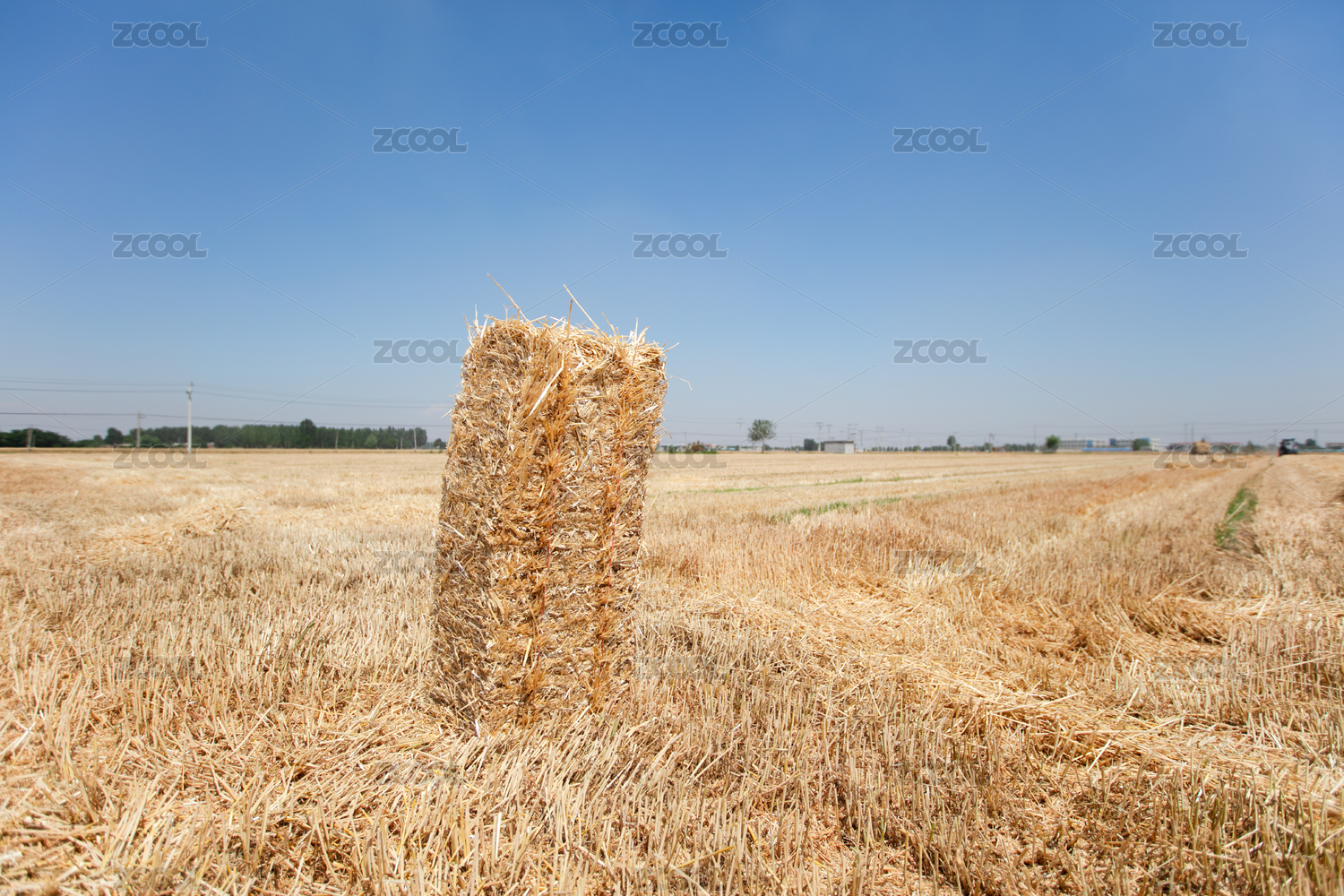 收割后的麥子地剩下的麥秸打包