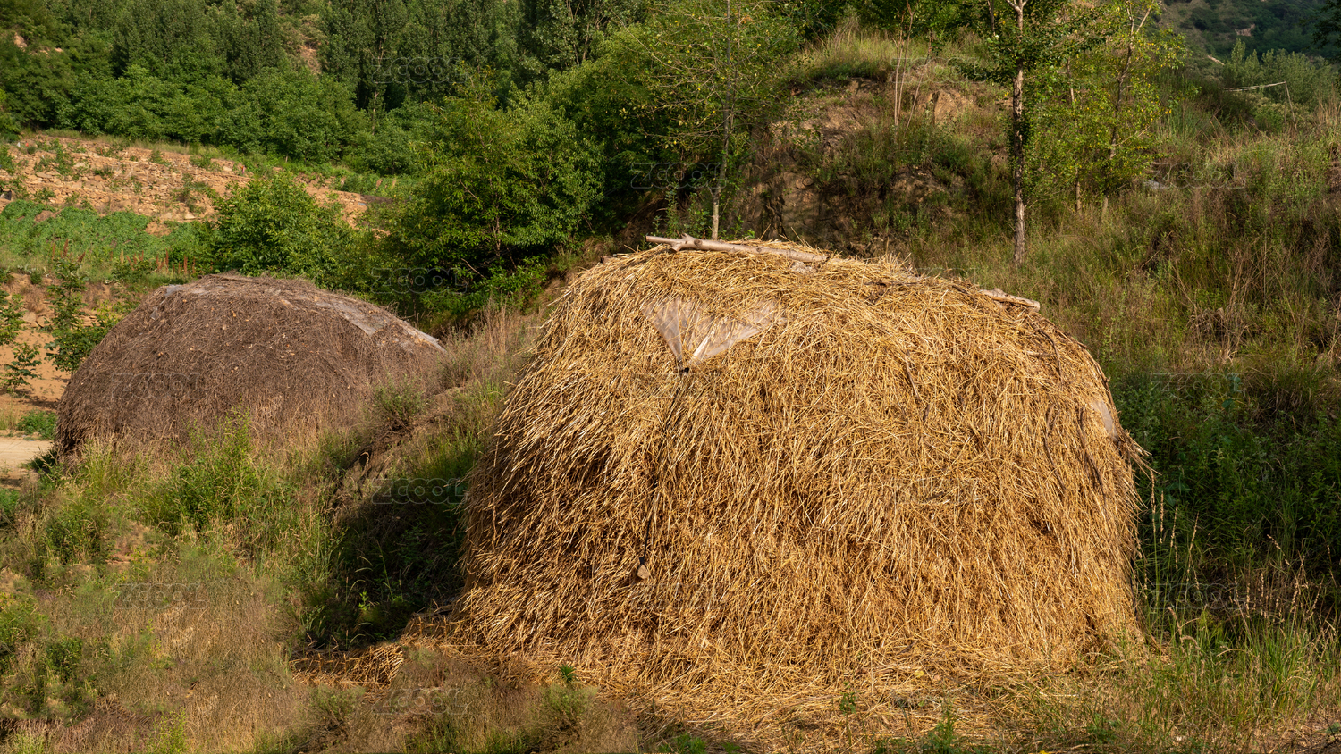 金黃色的麥秸垛堆放在路邊