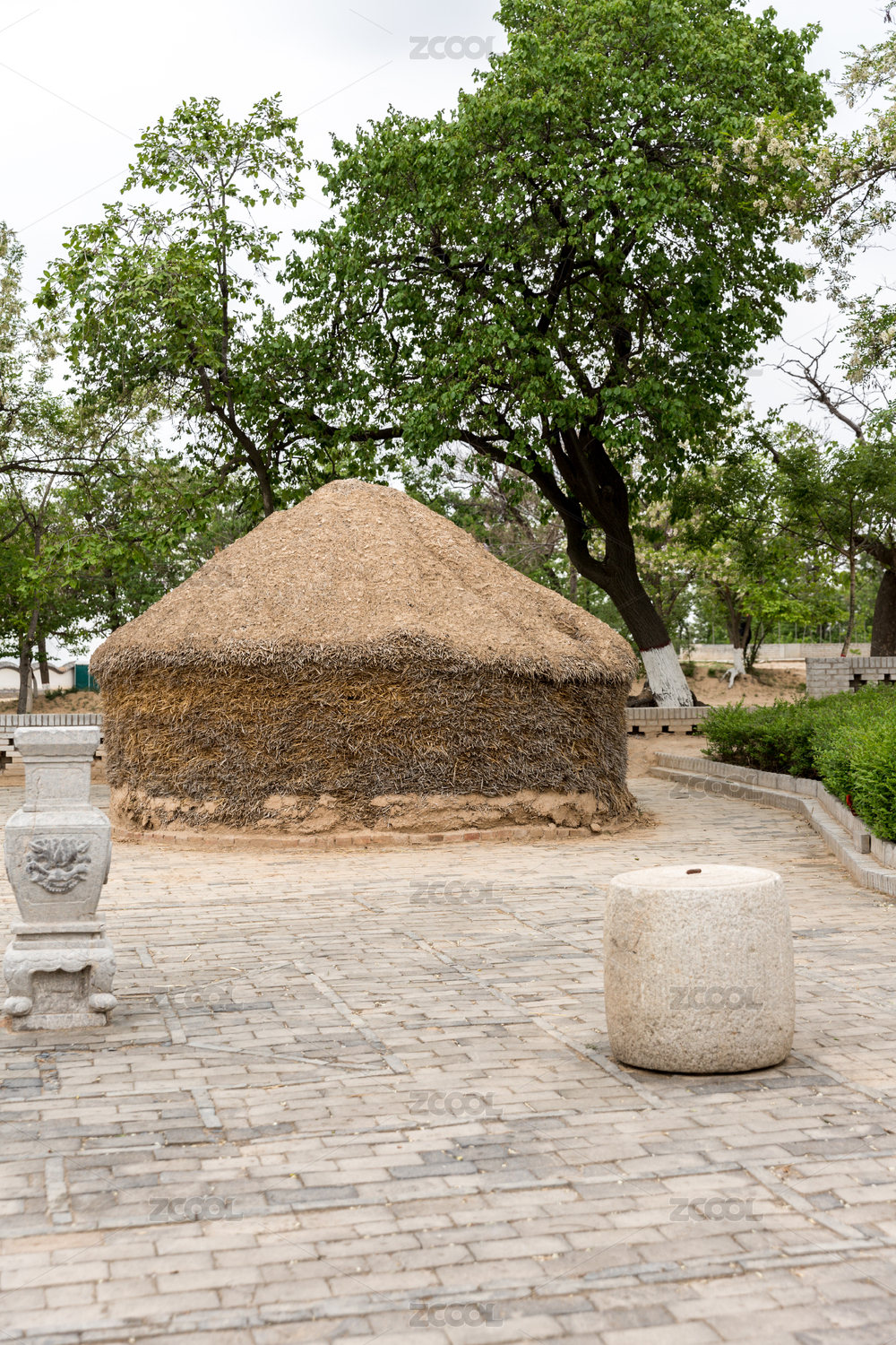 北方民間麥秸垛與石磙