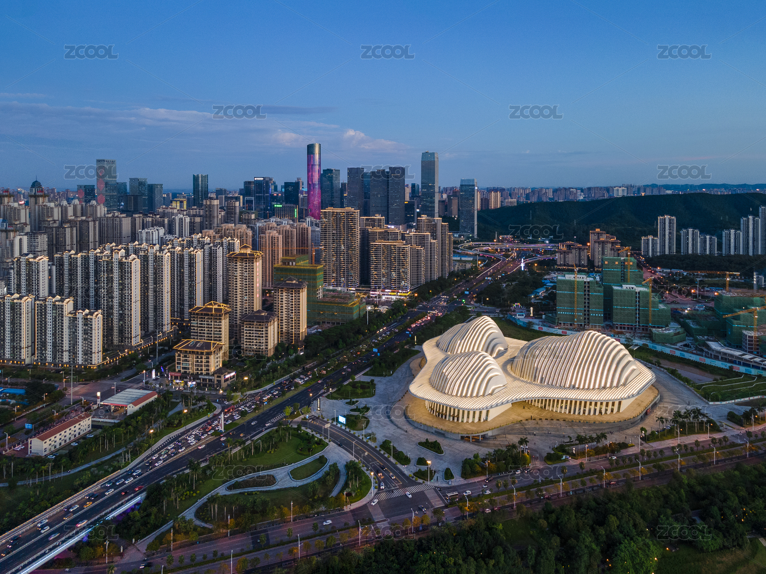 航拍廣西文化藝術(shù)中心與五象總部基地