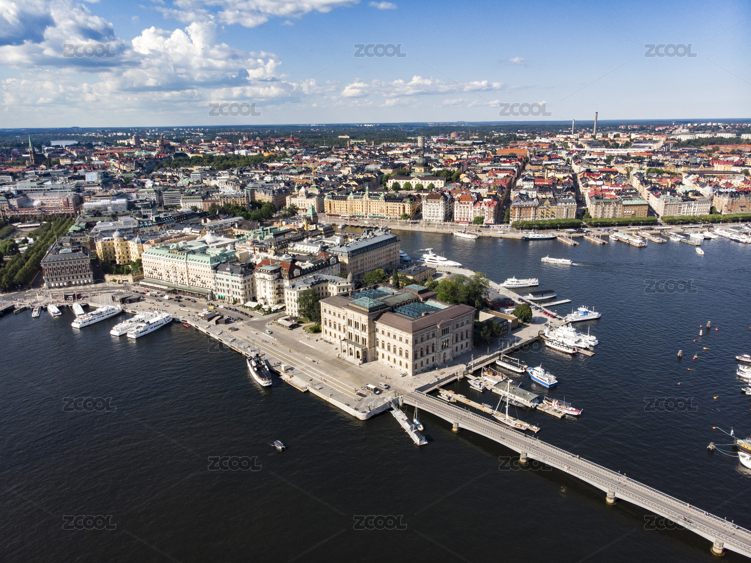 航拍視角下的瑞典斯德哥爾摩國(guó)立博物館及城市遠(yuǎn)景