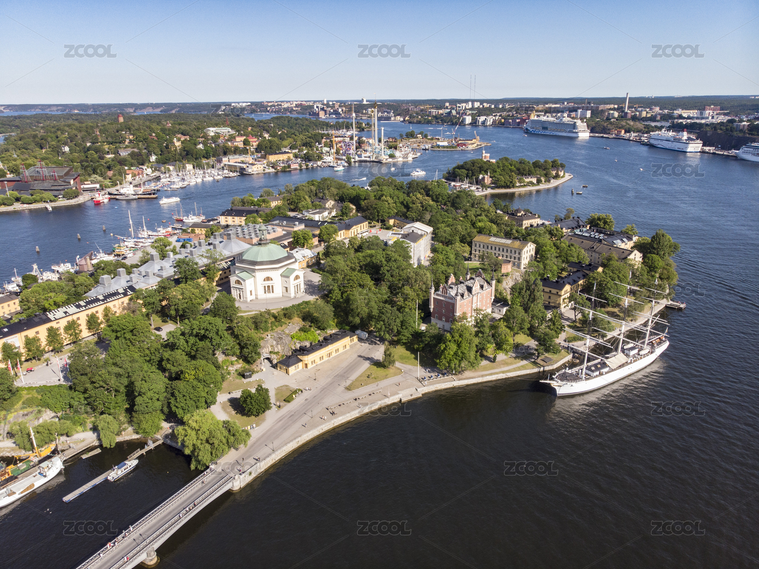 航拍視角下的瑞典斯德哥爾摩船島風(fēng)光