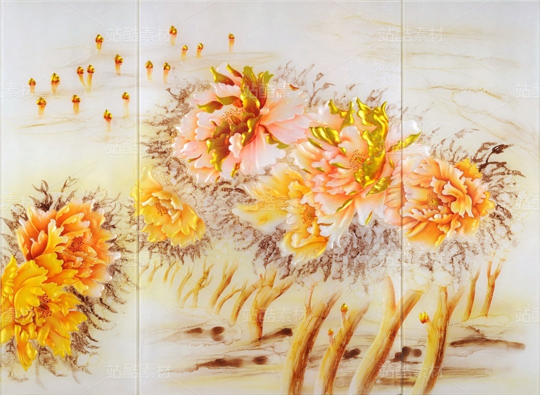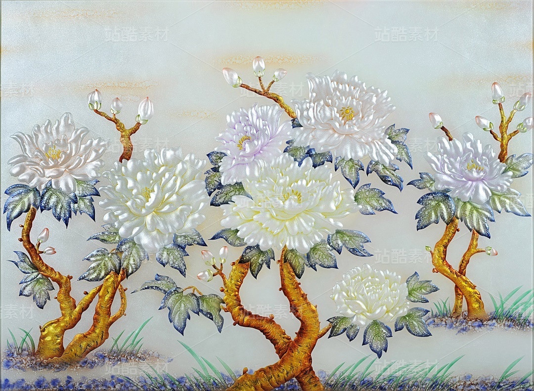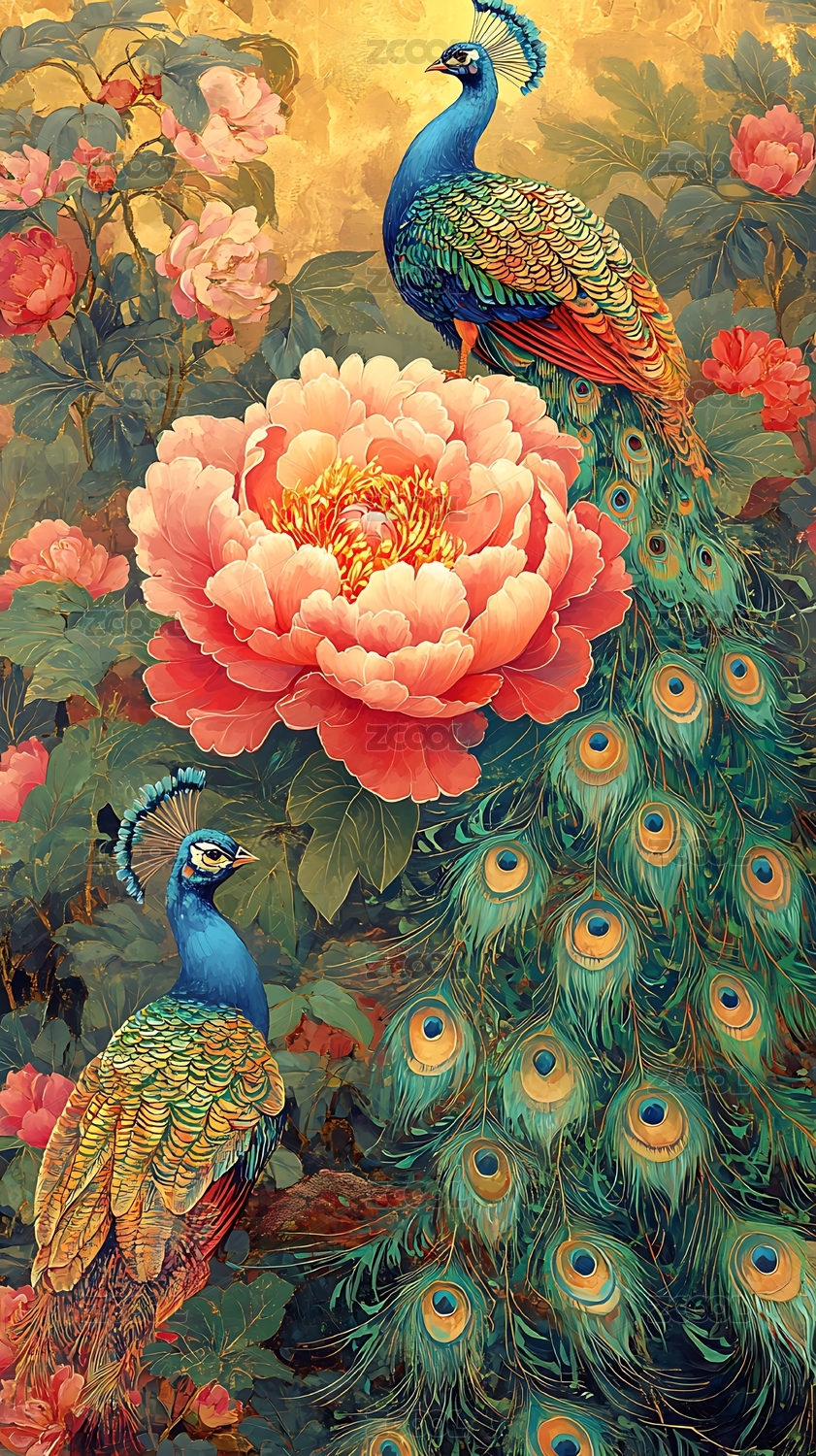 花開富貴牡丹花孔雀中式國畫畫框裝飾素材壁畫玄關(guān)掛畫