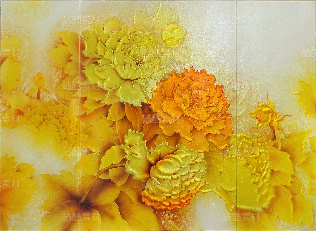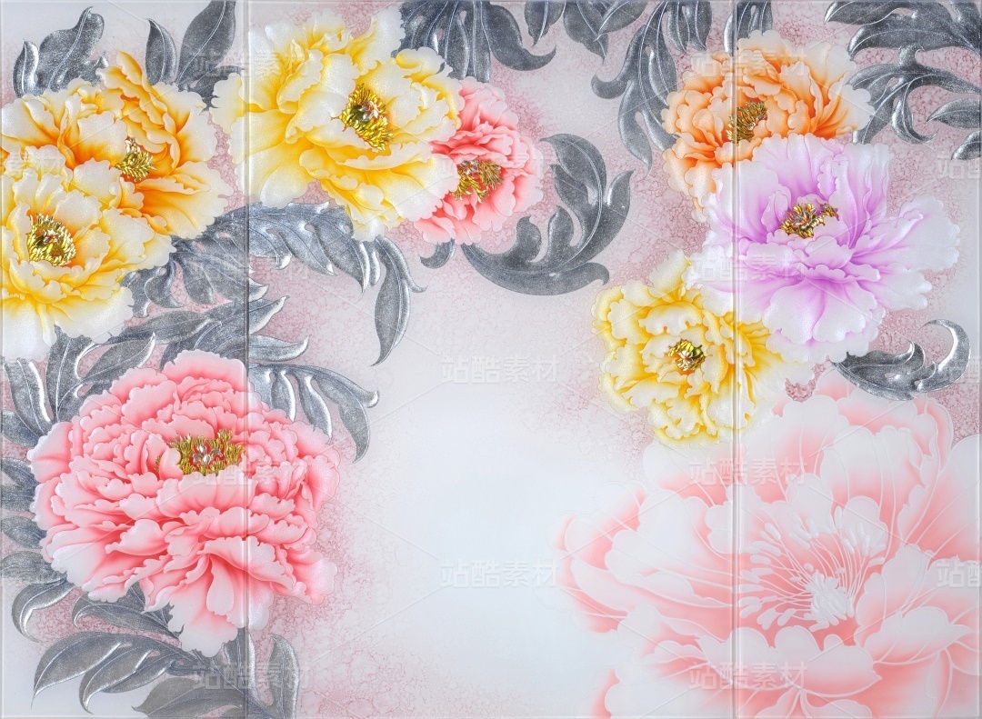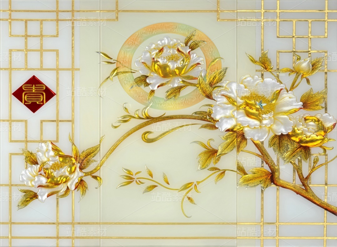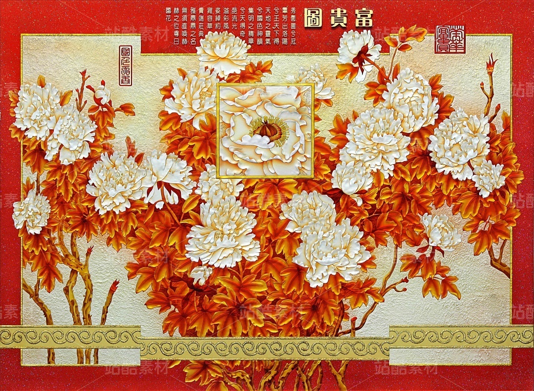 花開富貴牡丹花孔雀中式國畫畫框裝飾素材客廳壁畫掛畫