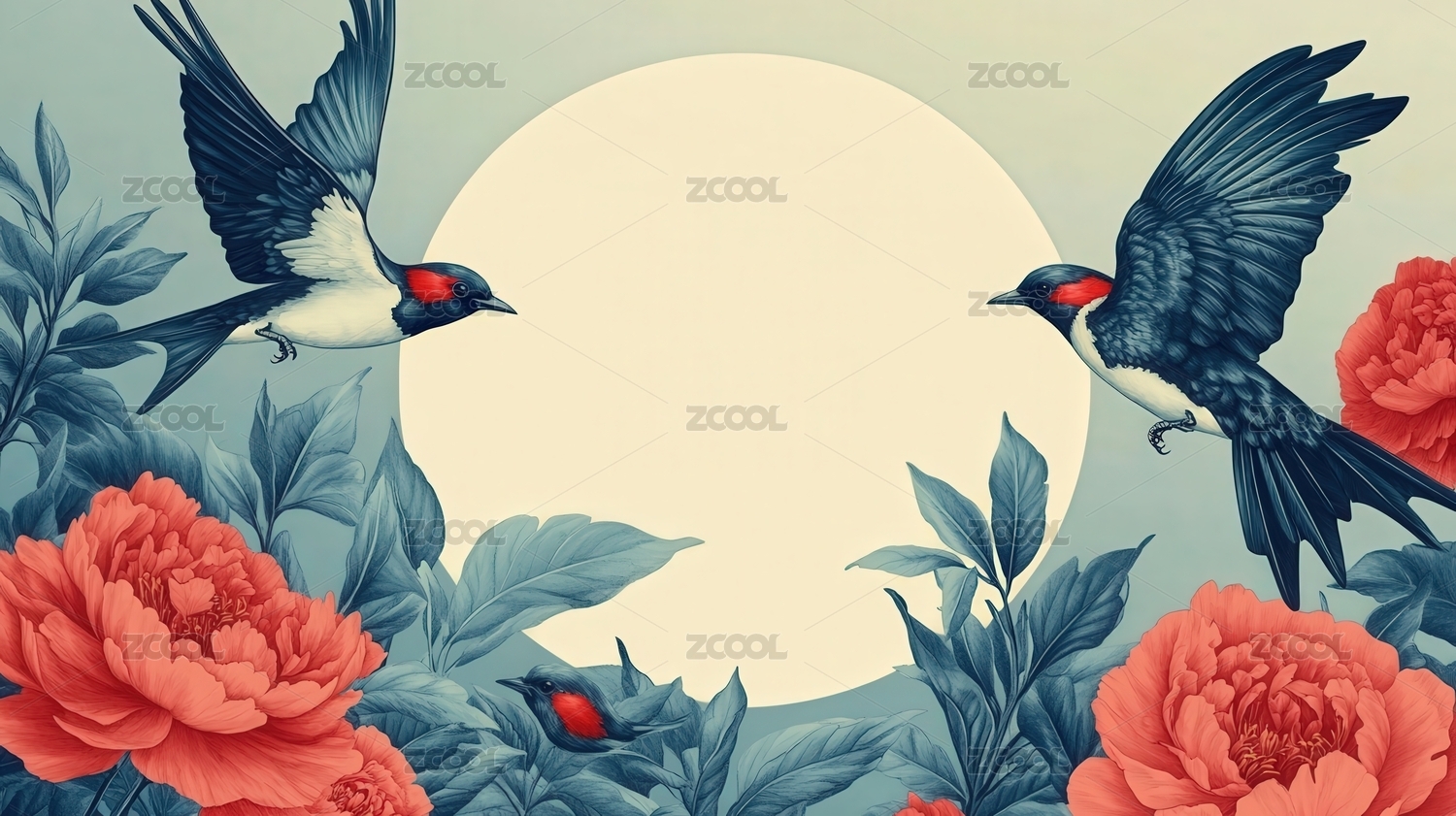 國風(fēng)水墨牡丹花青花瓷插畫裝飾畫