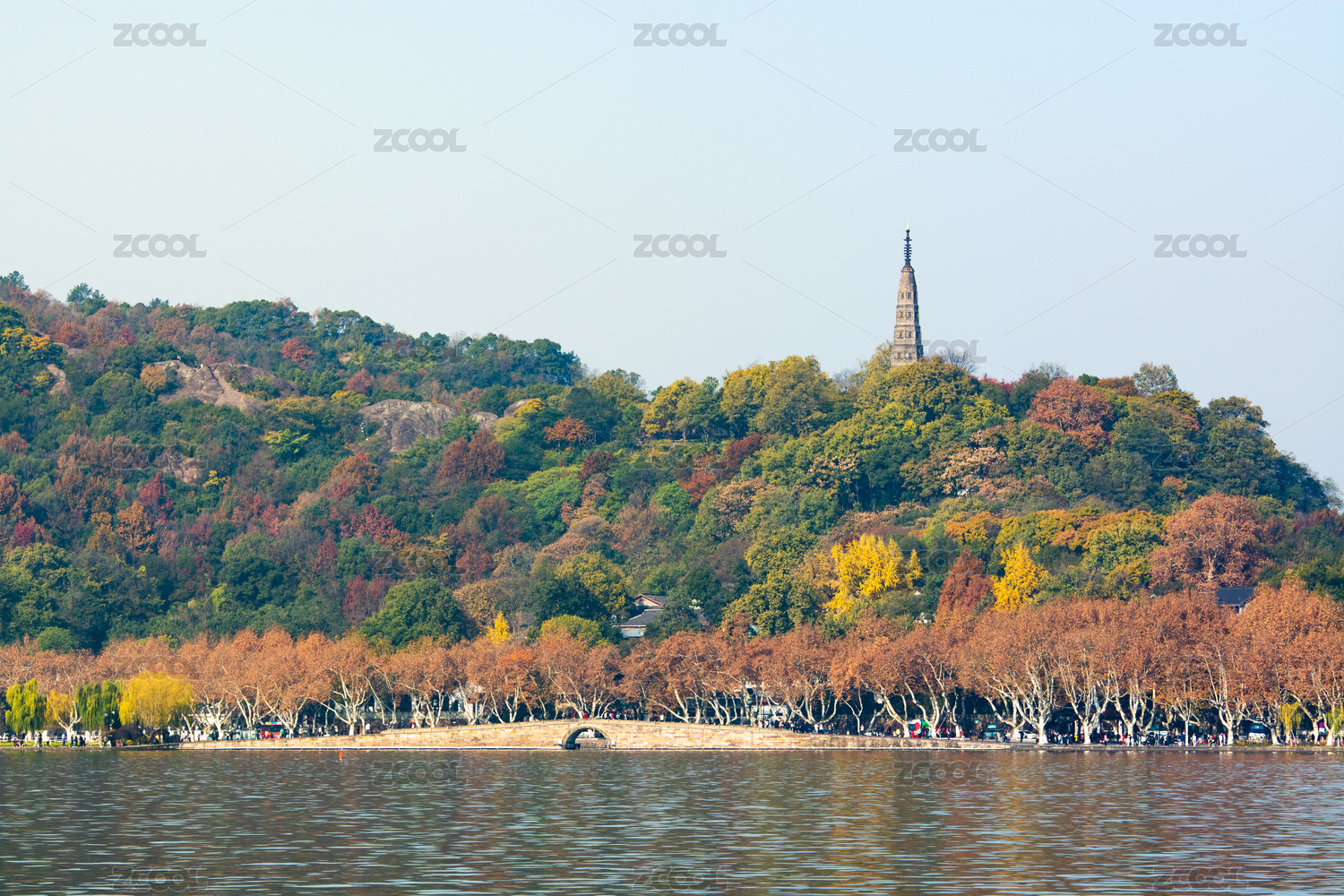 浙江杭州西湖地標古建筑斷橋與保俶塔