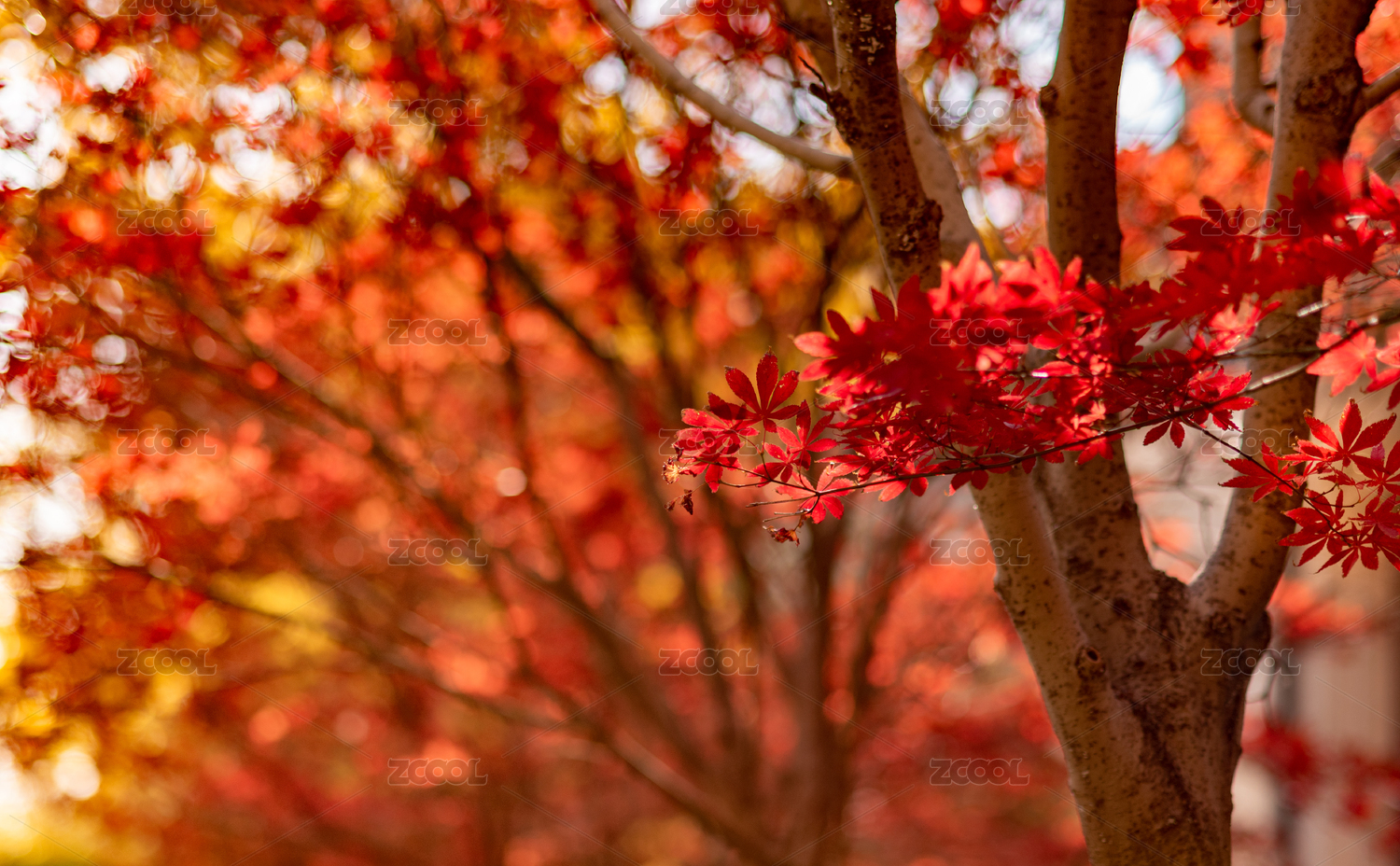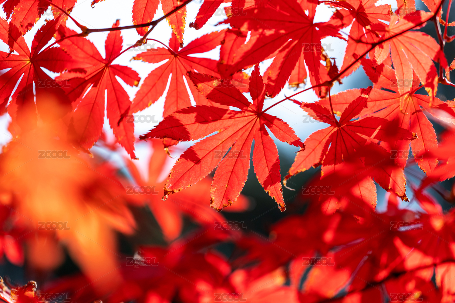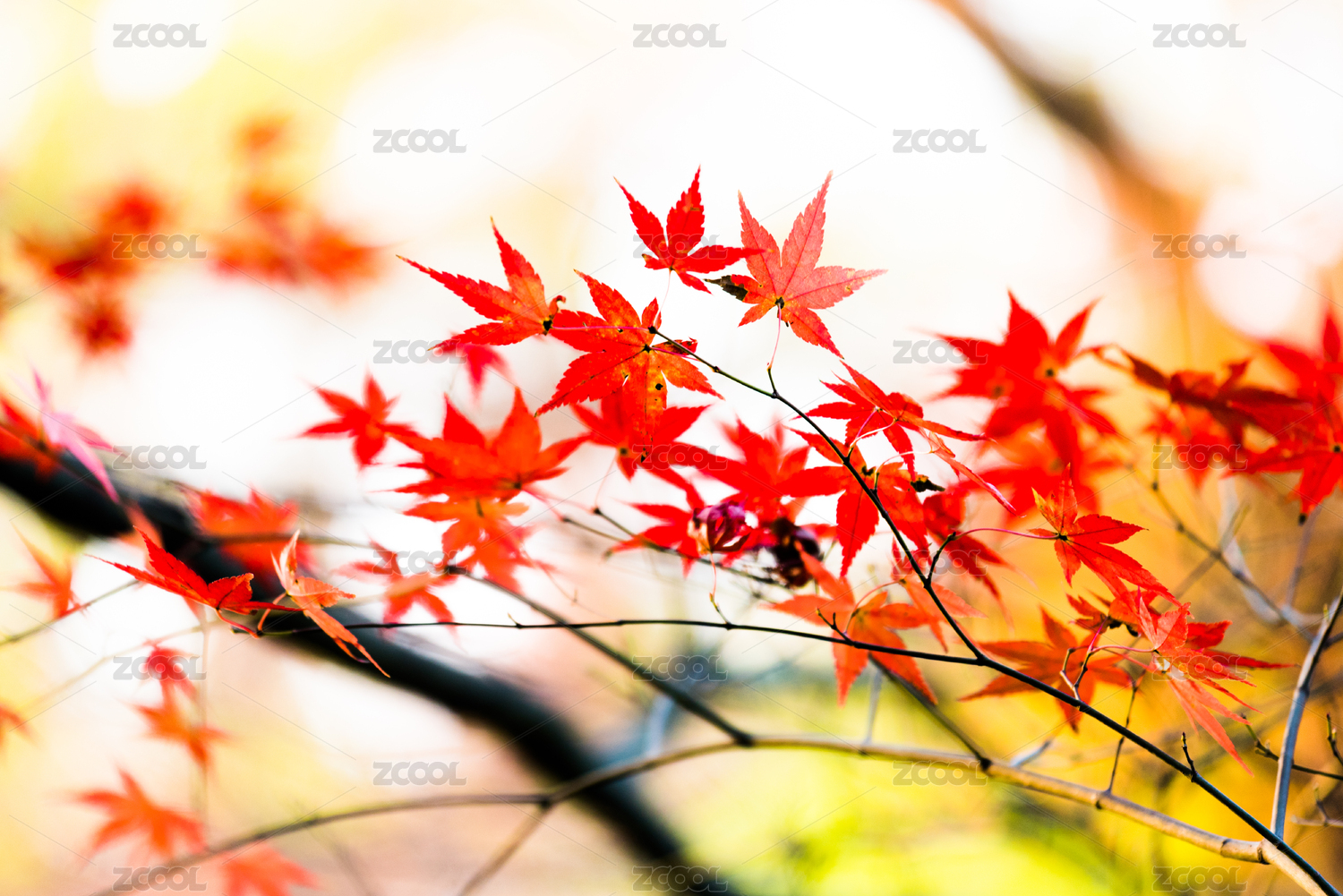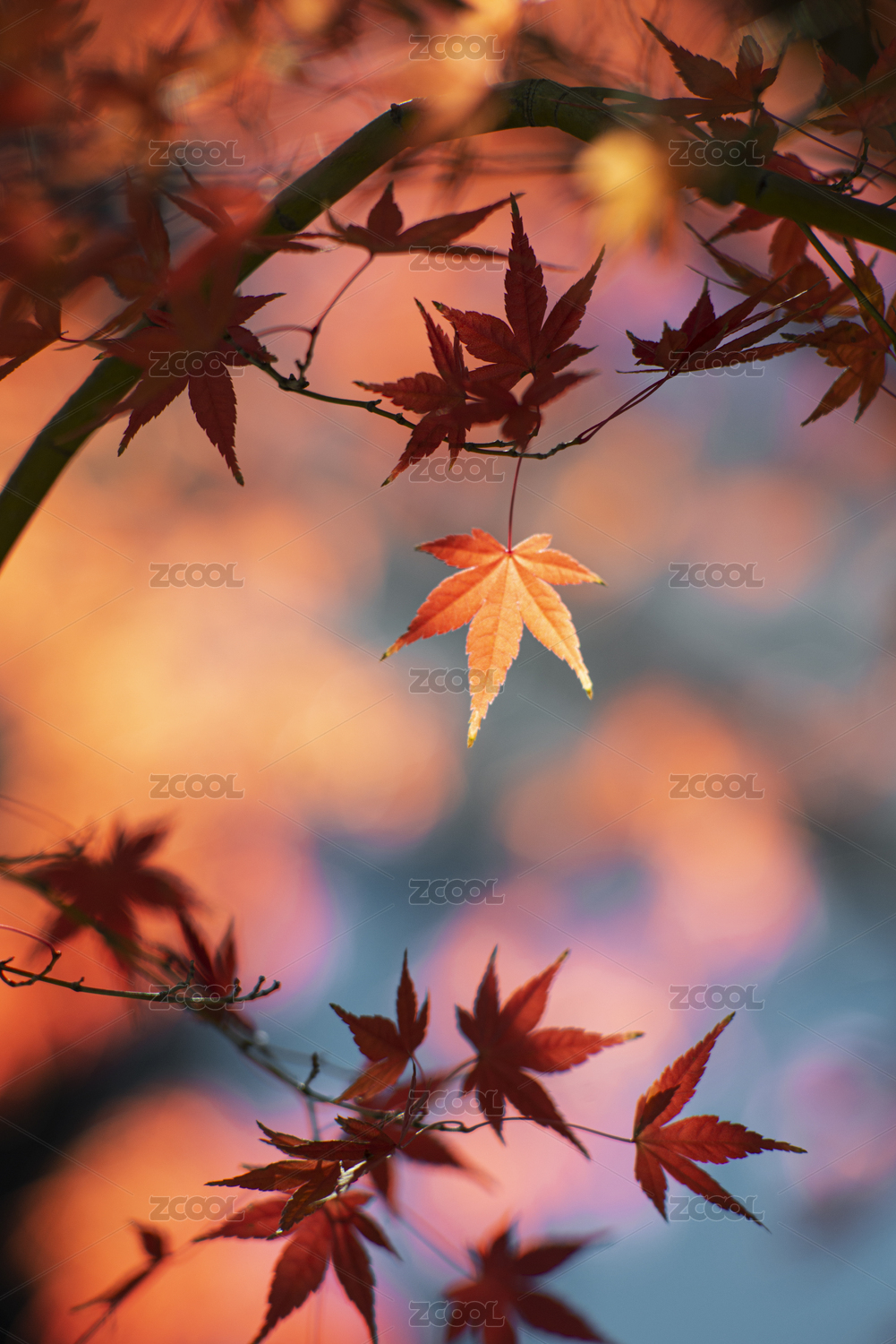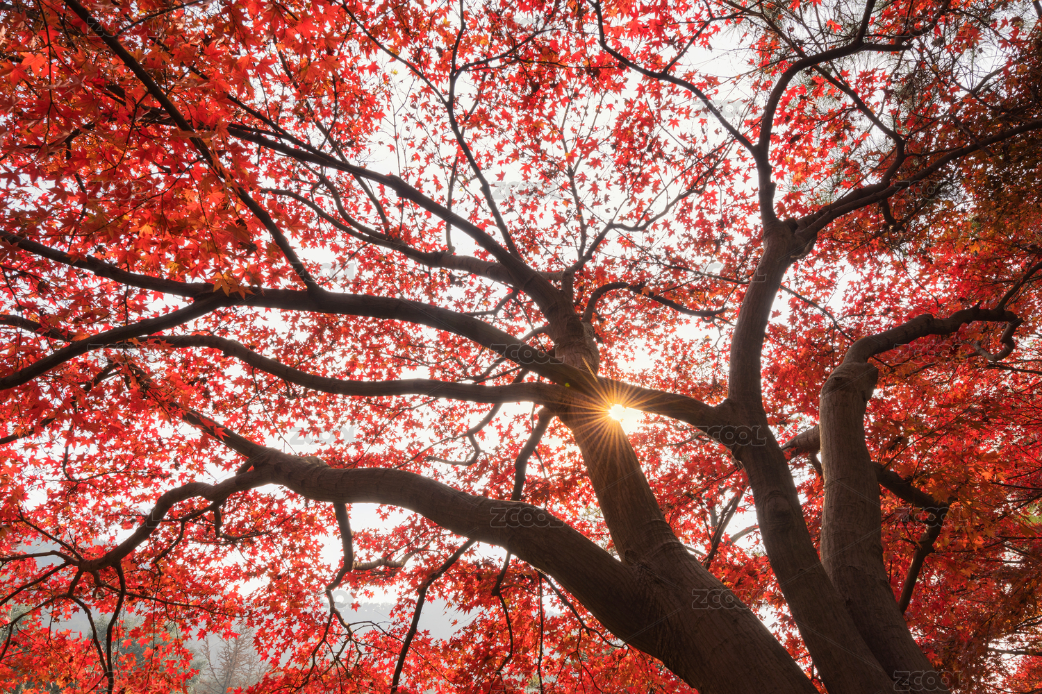 側逆光下朦朧背景前的楓樹與大片紅楓