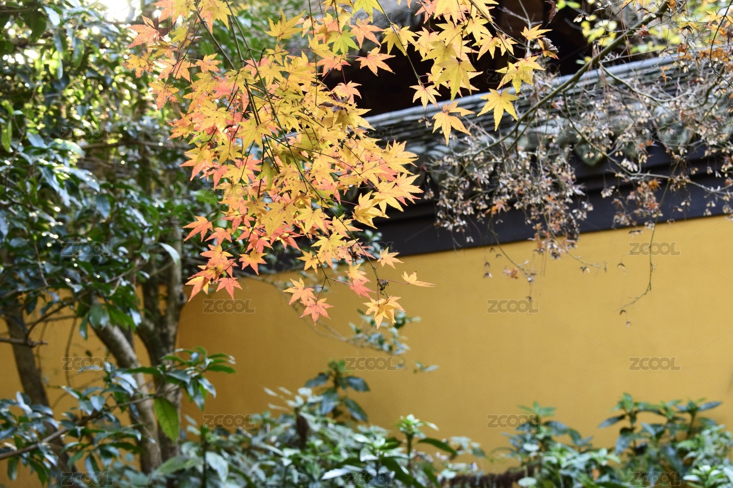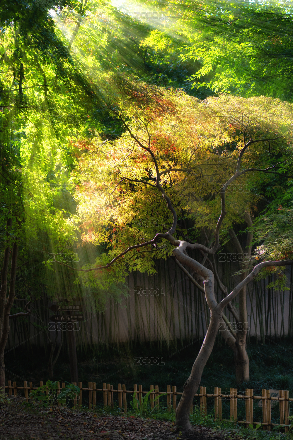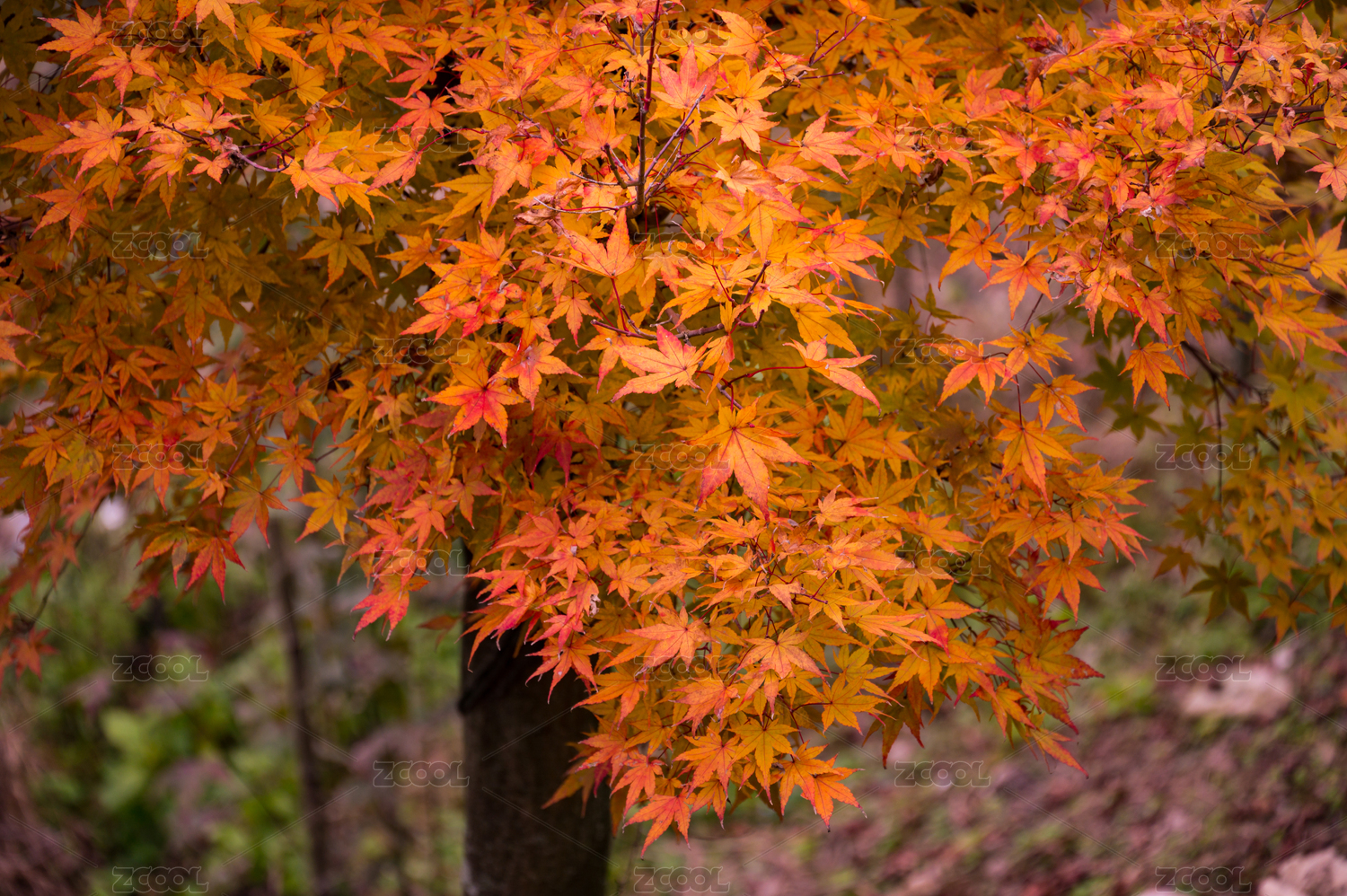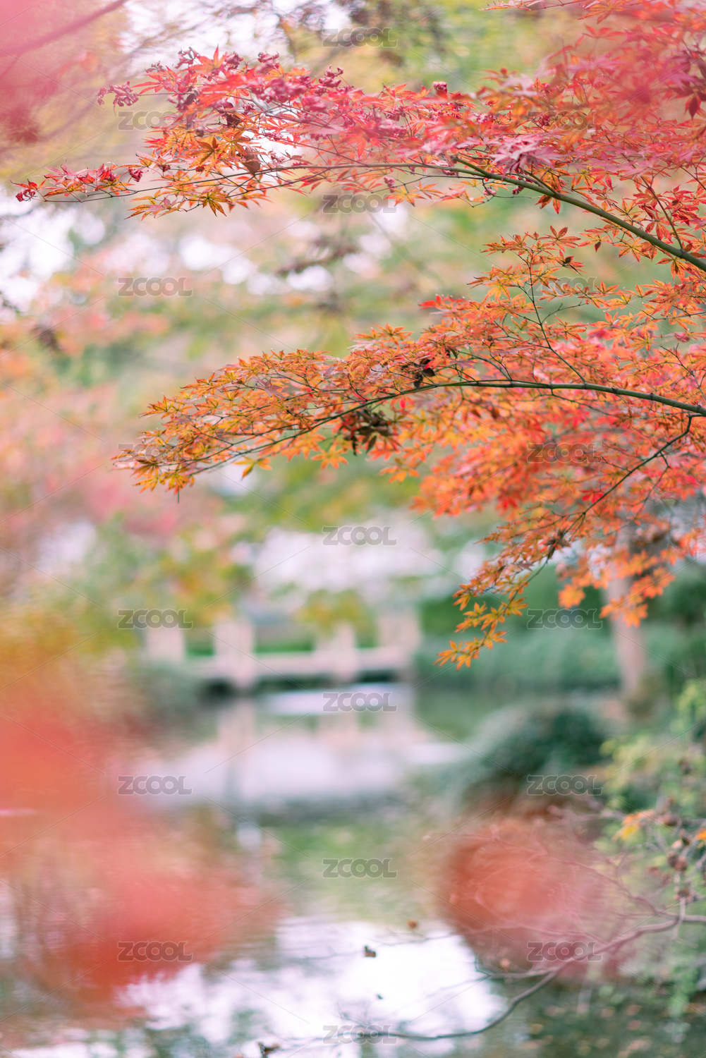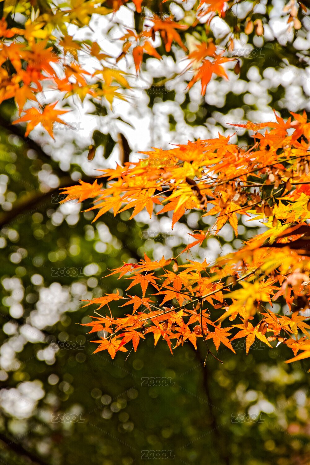 側逆光下朦朧背景前的楓樹與大片紅楓