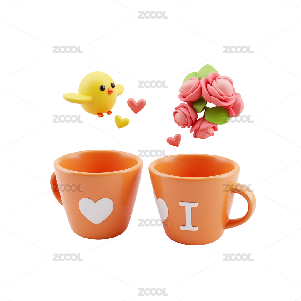 「愛」 520 情人節(jié) 七夕 杯子花鳥