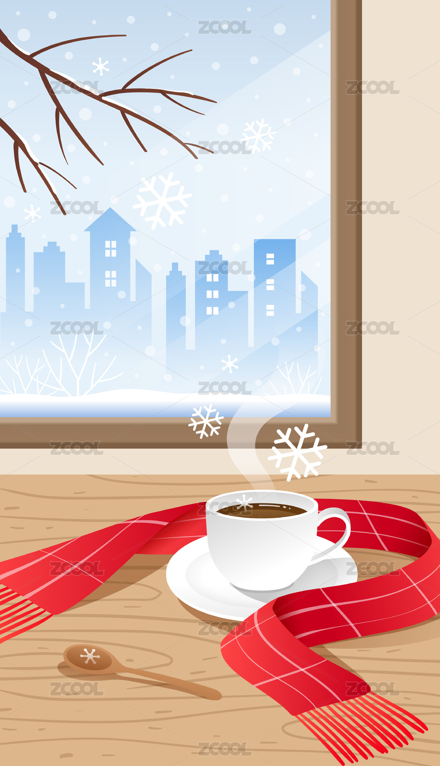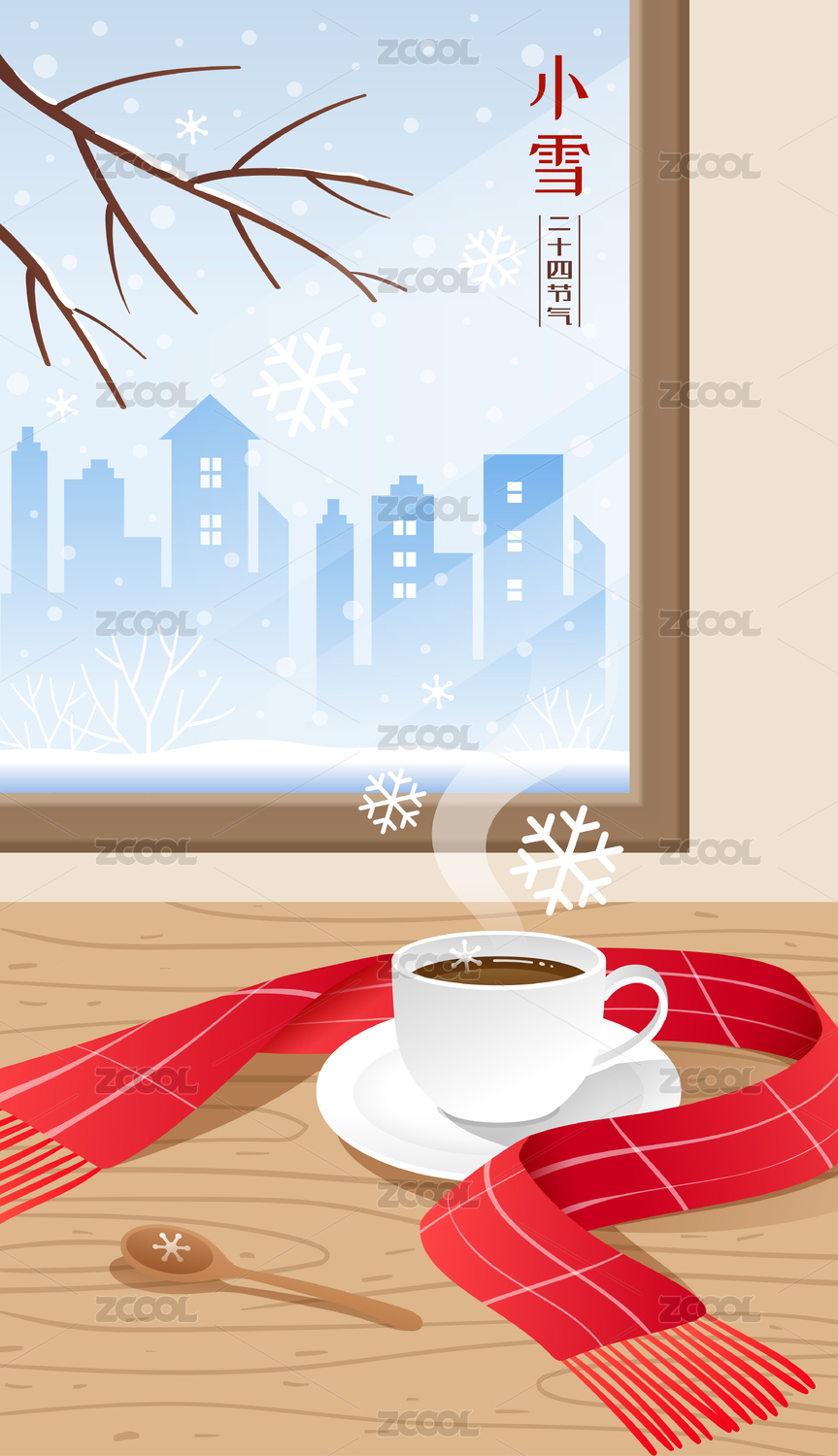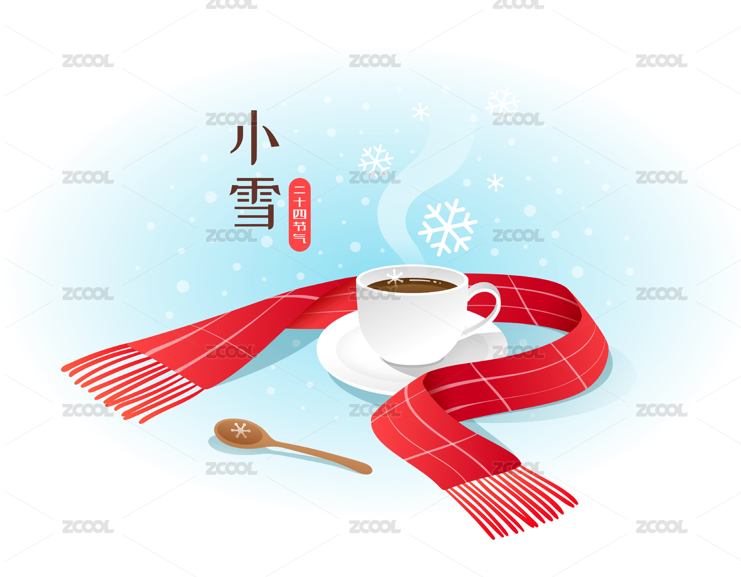 冬天小雪節(jié)氣杯子和圍巾插畫