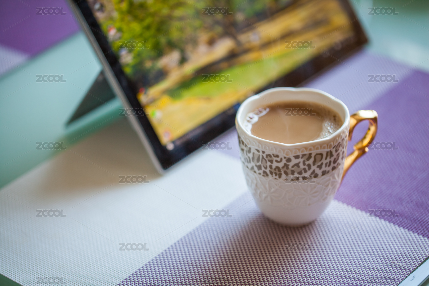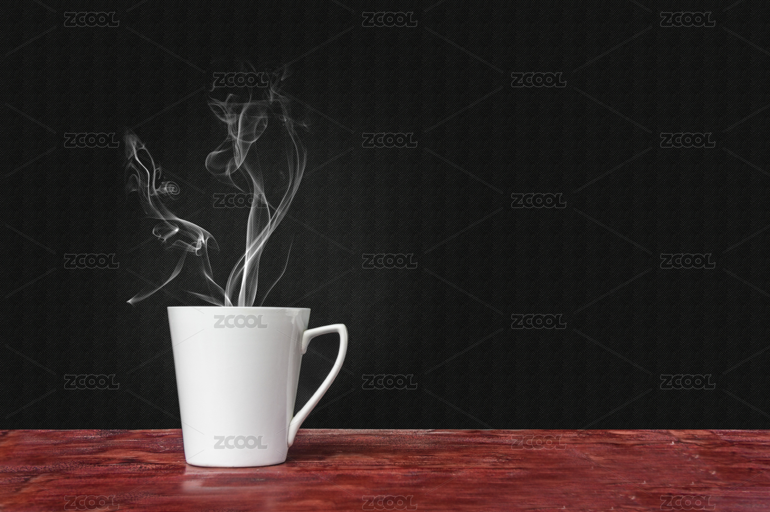 白色杯子,暗紅桌面,黑色背景,煙霧