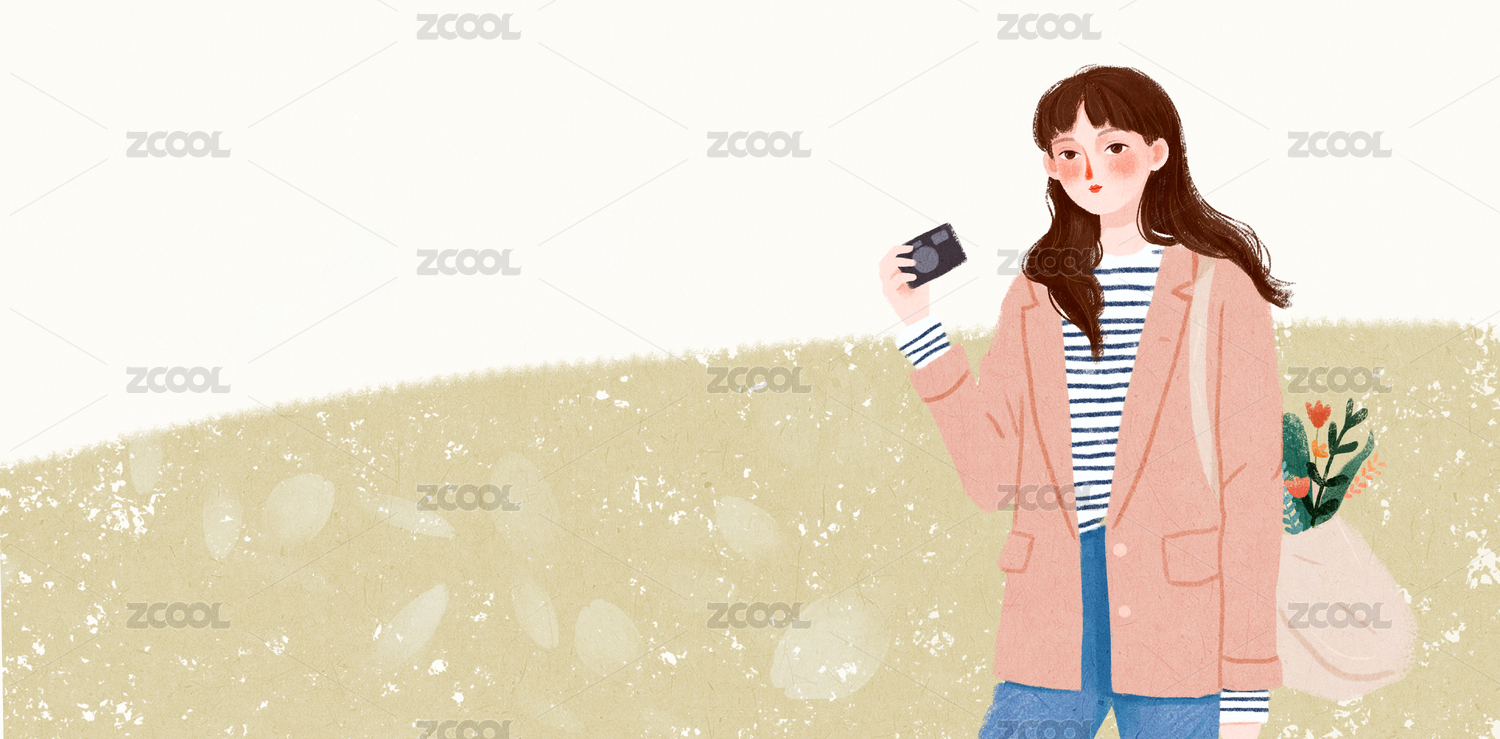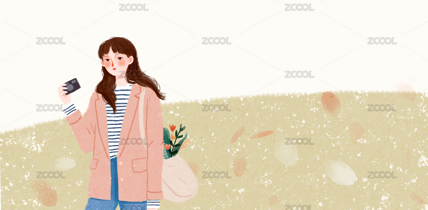 手拿相機(jī)背著帆布包的長發(fā)女孩左側(cè)圖