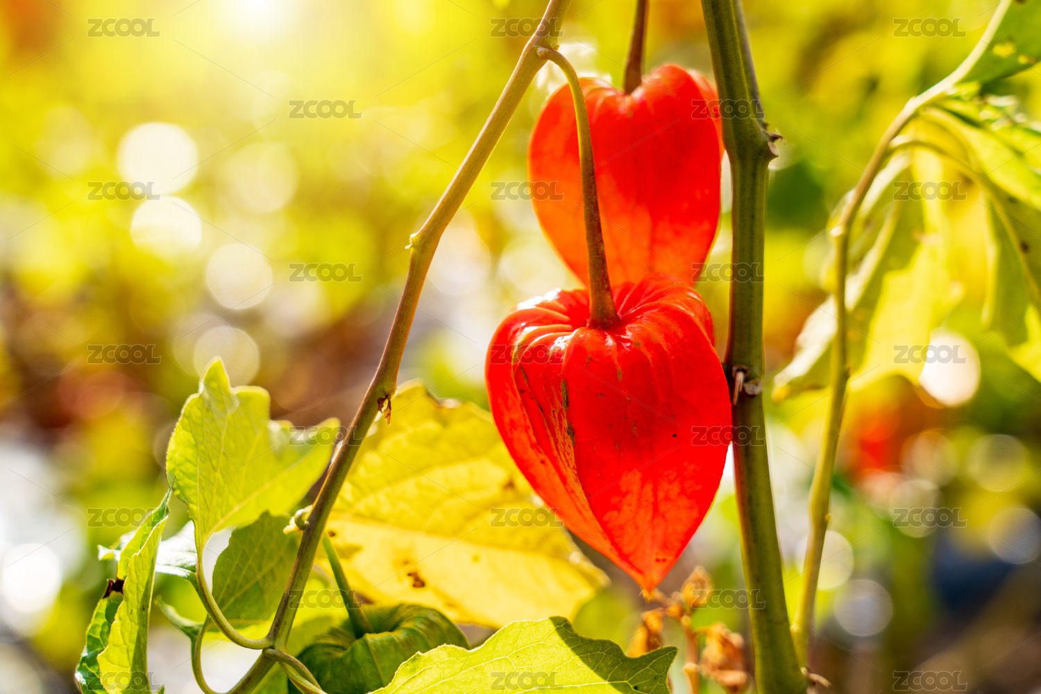 秋天陽(yáng)光下中國(guó)吉林田地中生長(zhǎng)的紅姑娘
