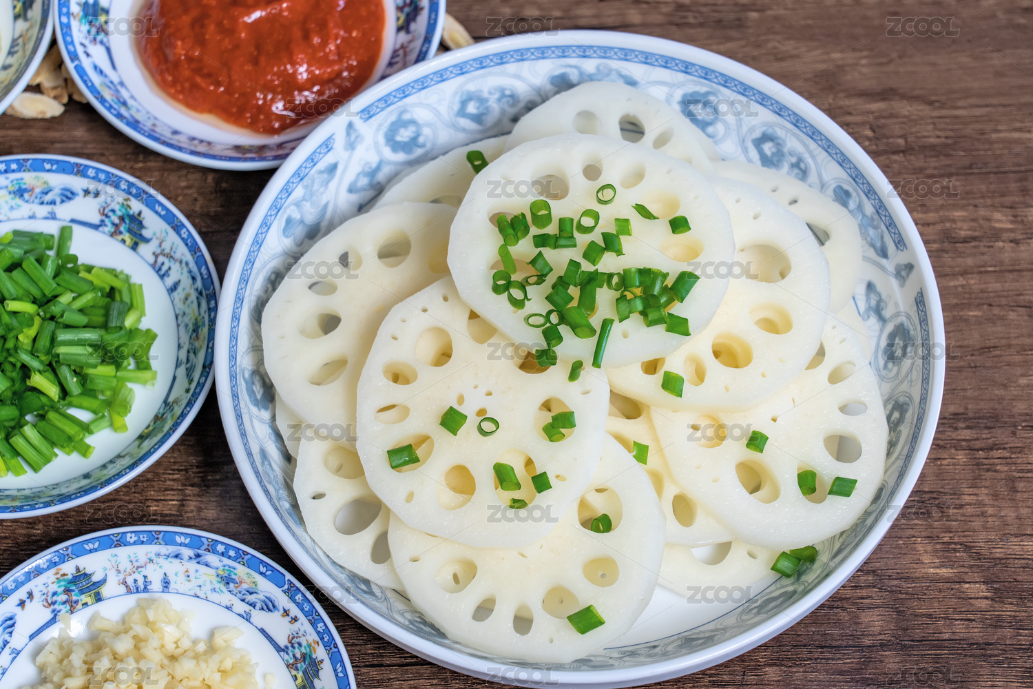 炭木色餐桌上放著一盤地方特色杭幫菜小蔥藕片