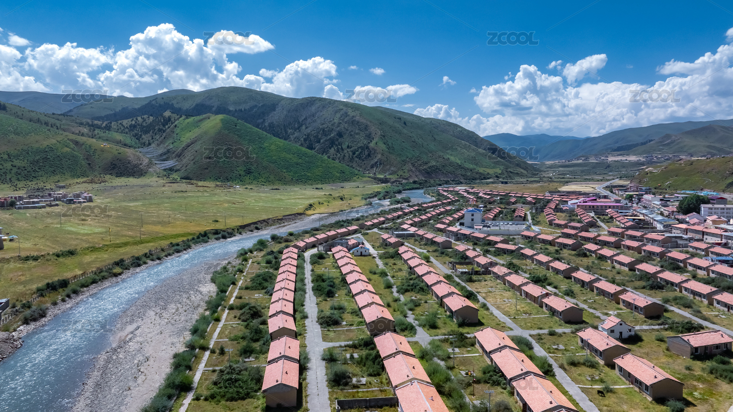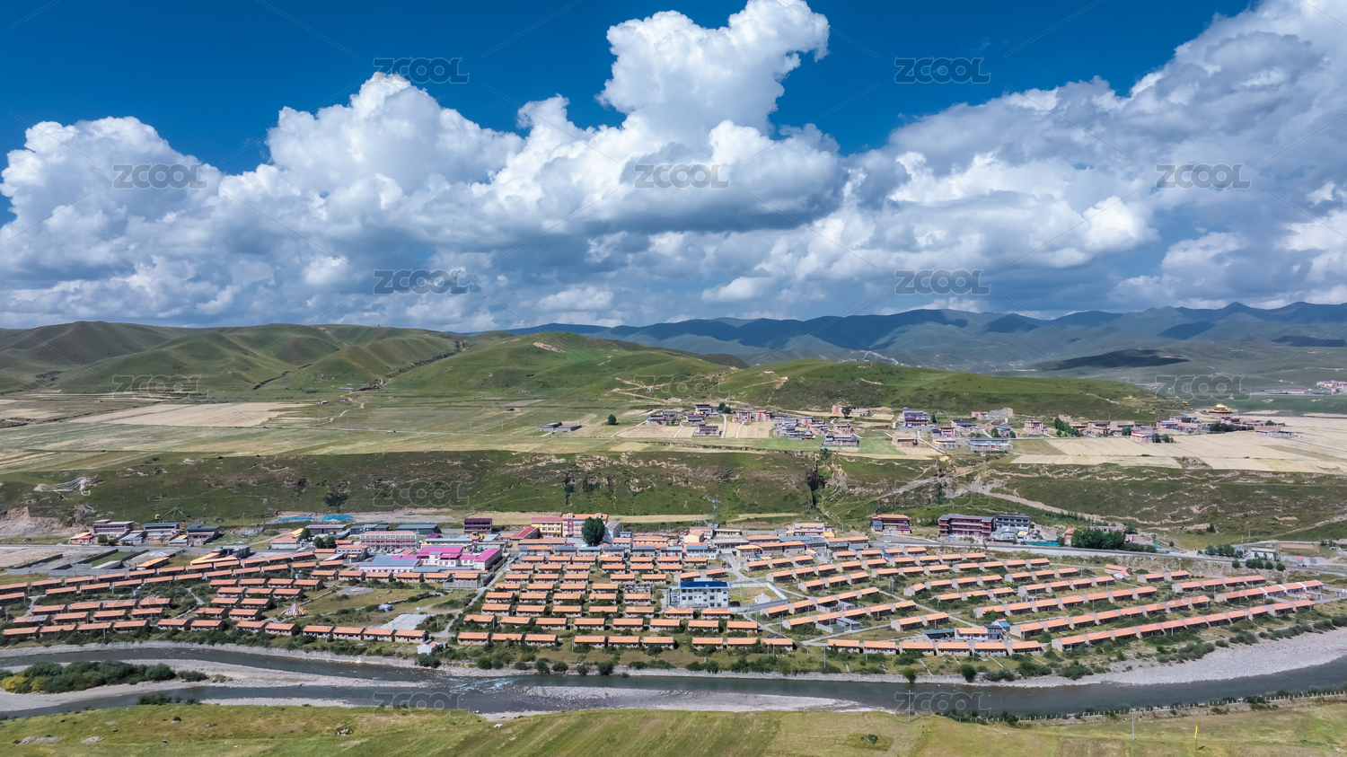 高原養(yǎng)殖場航拍,畜牧農(nóng)業(yè)牛舍