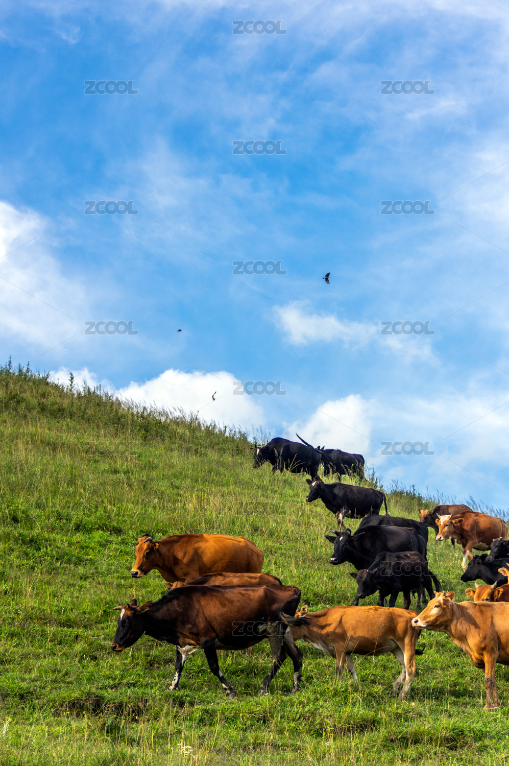 山坡上的牛群