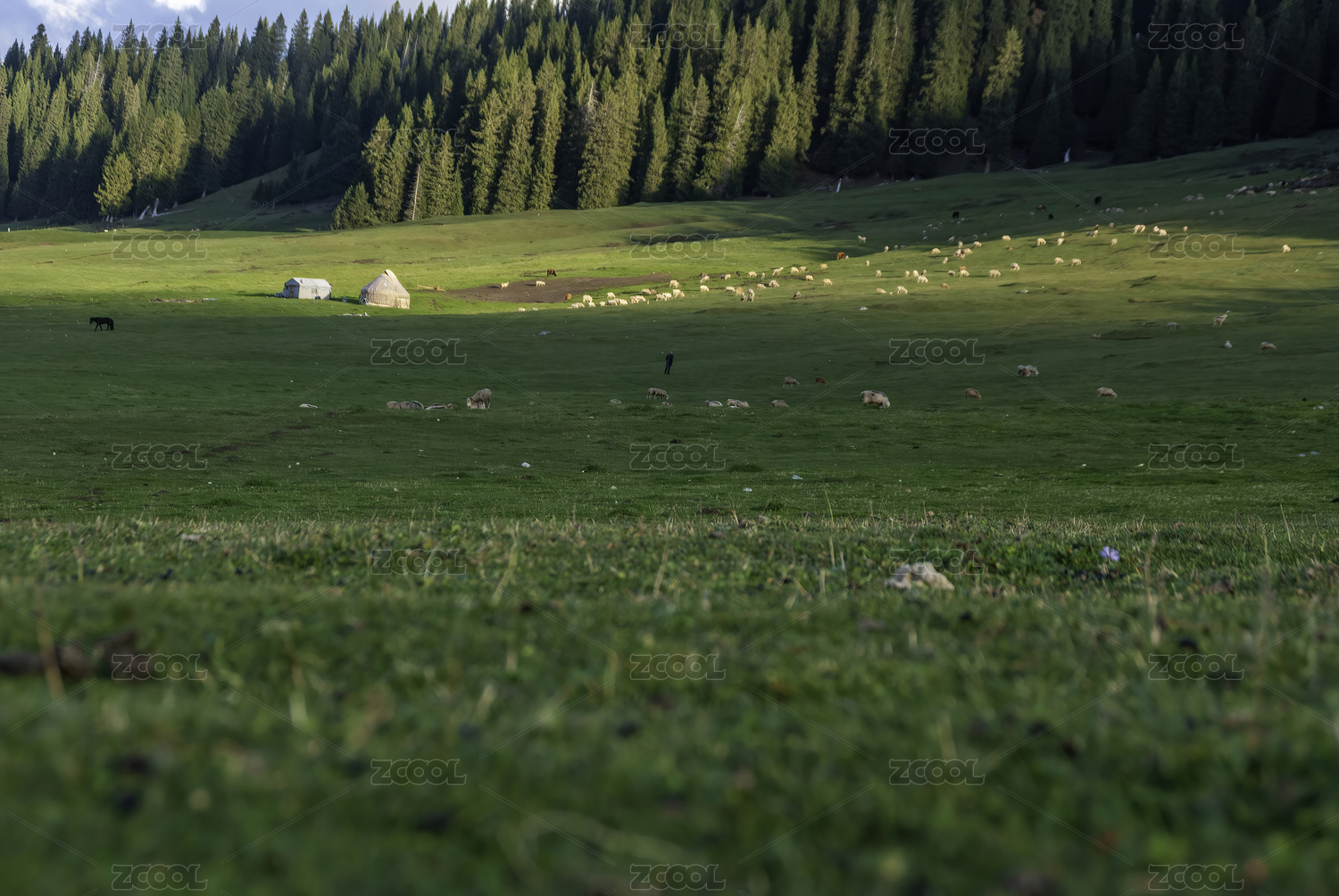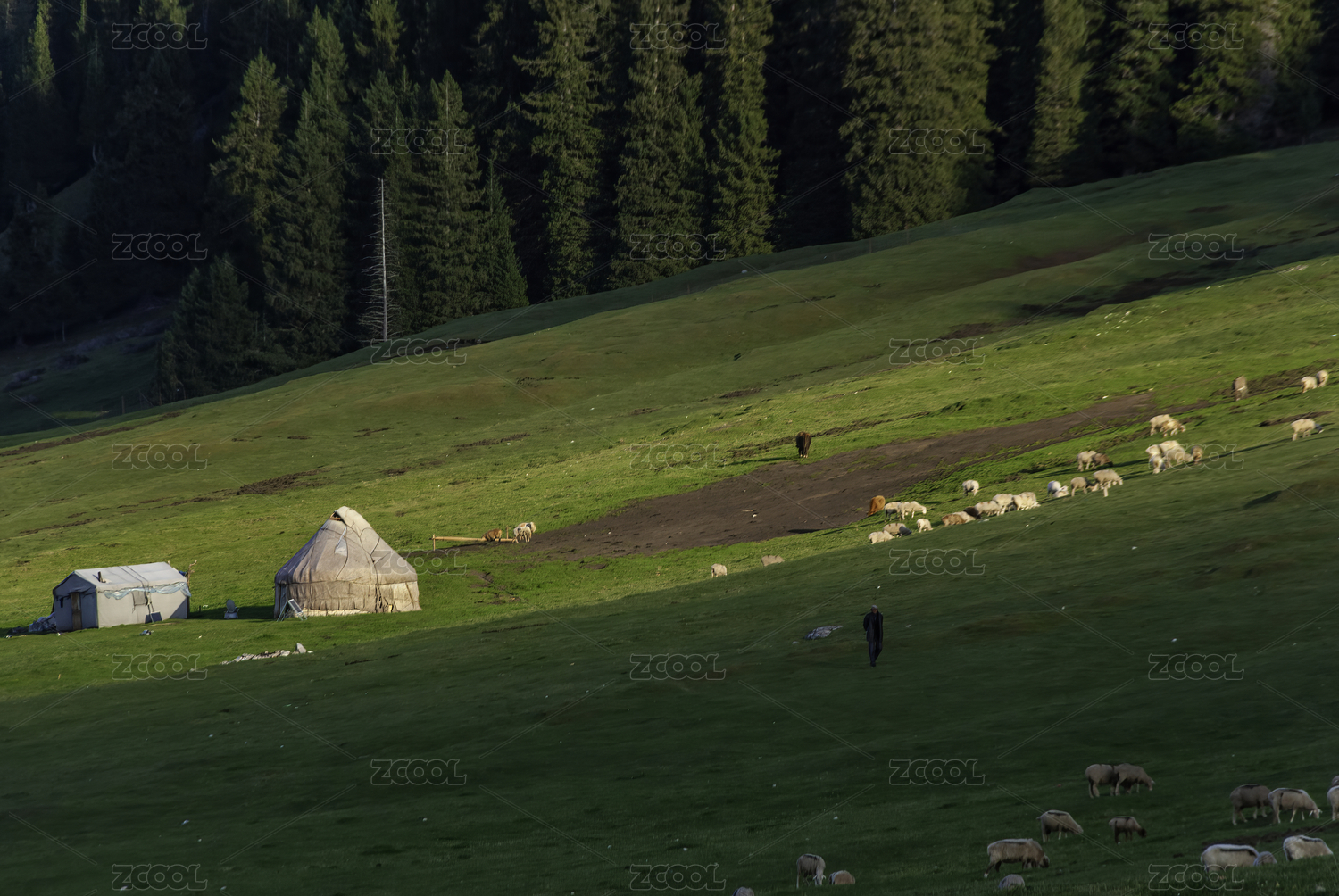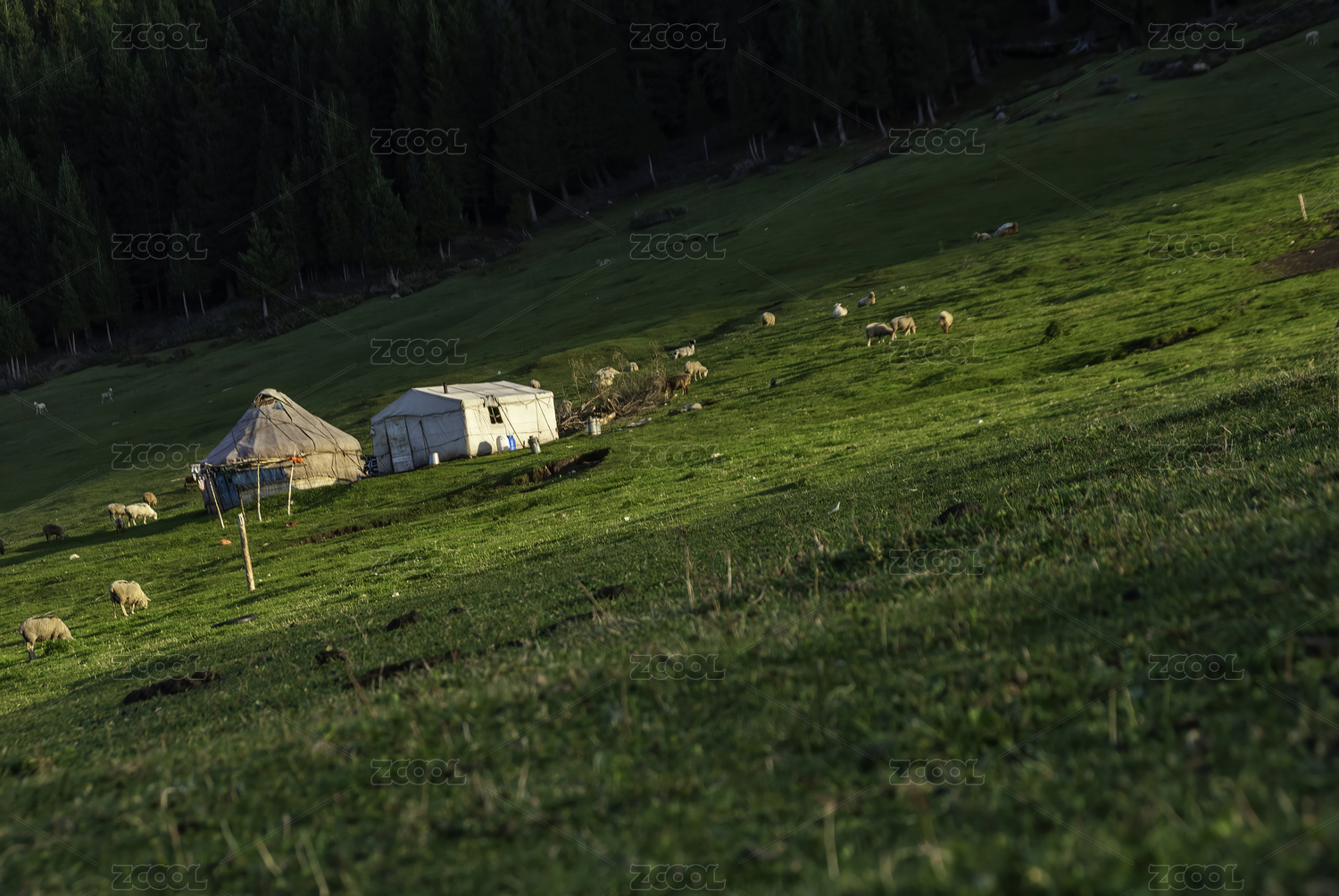 中國新疆草原牧羊畜牧業(yè)綠色自然風(fēng)光