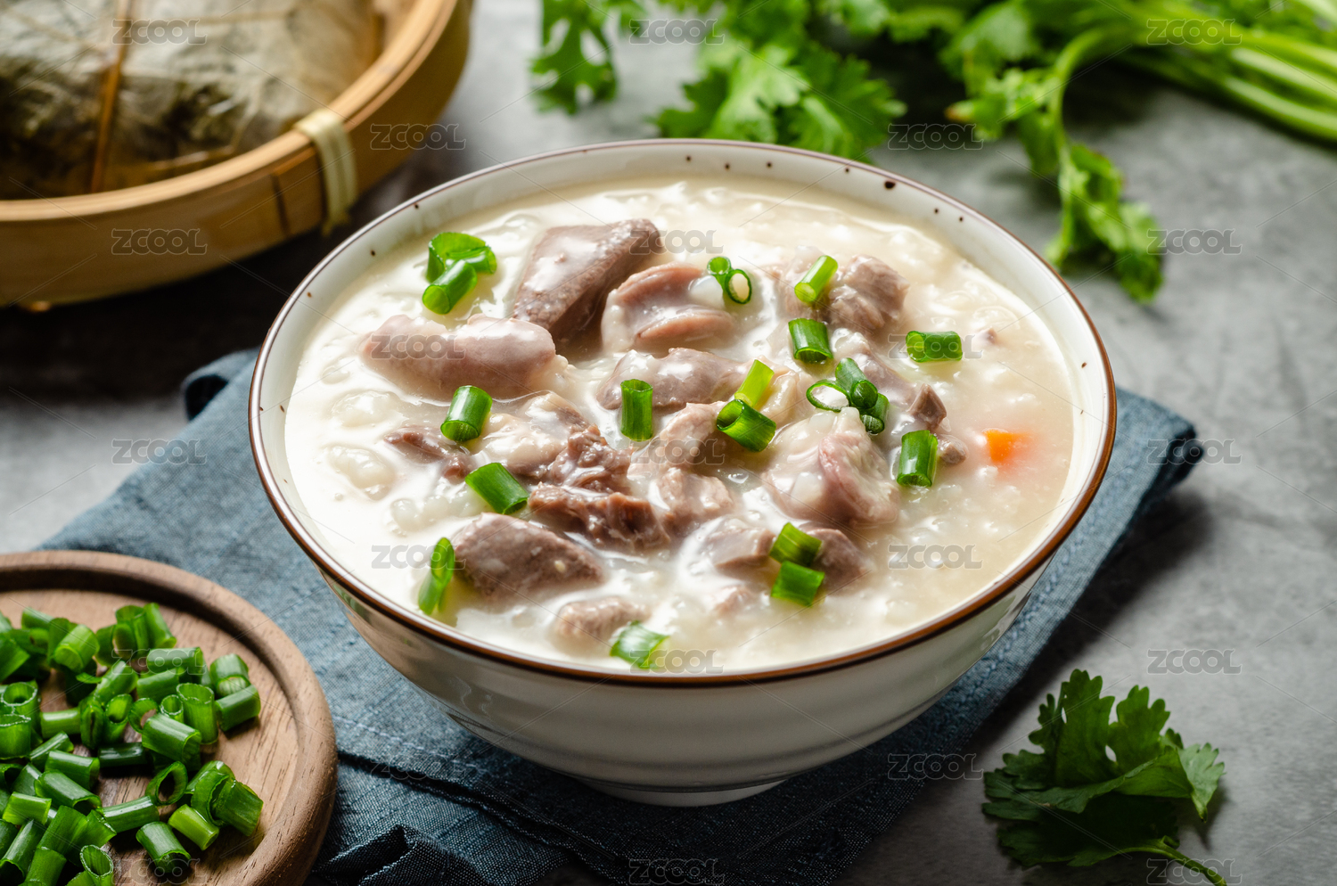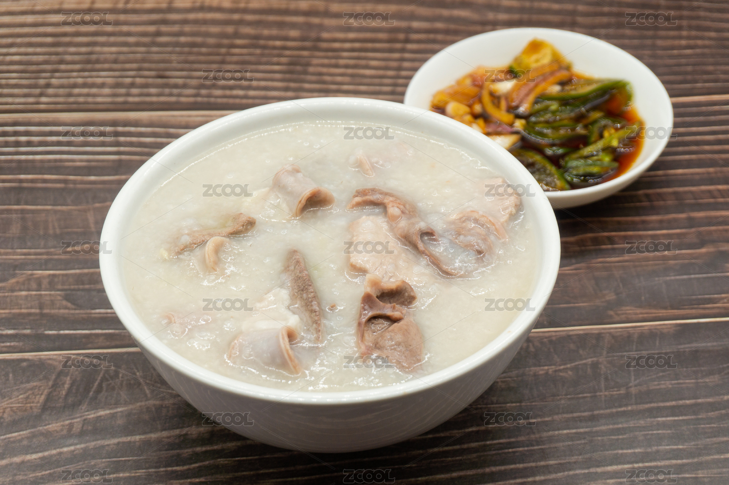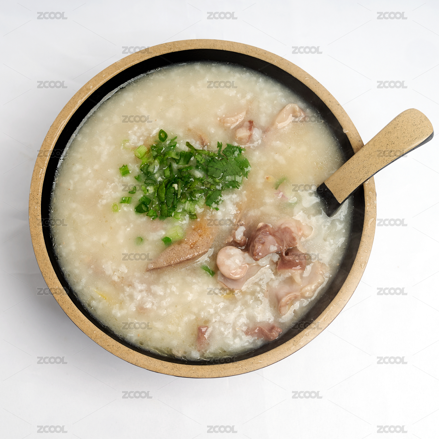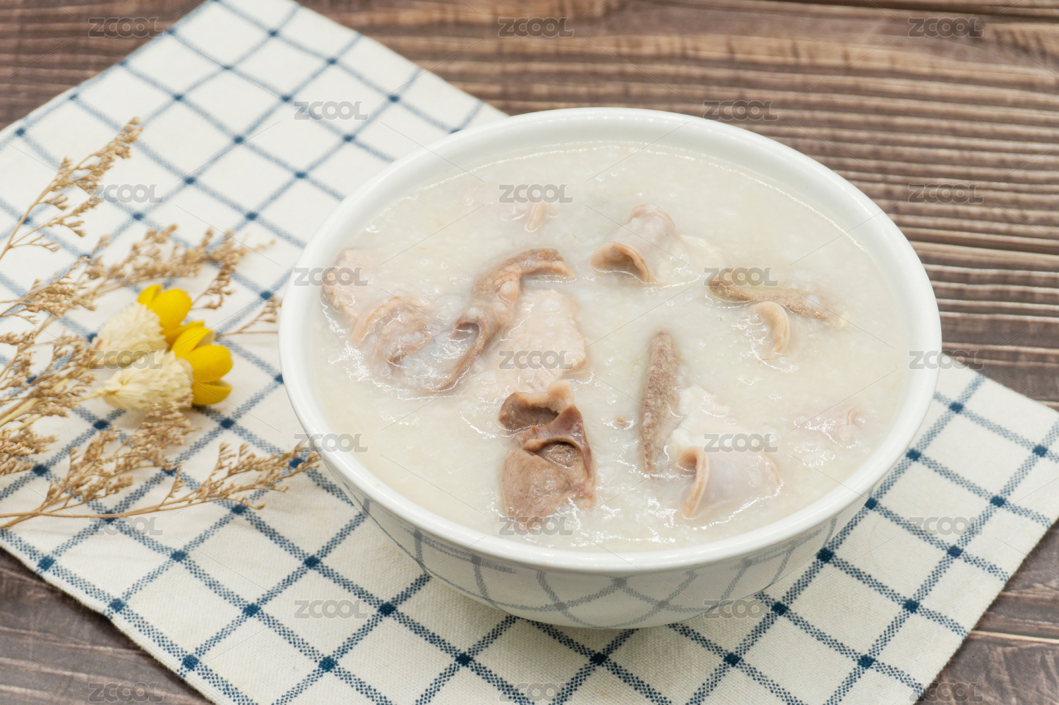 木桌背景傳統(tǒng)廣式早餐豬雜粥