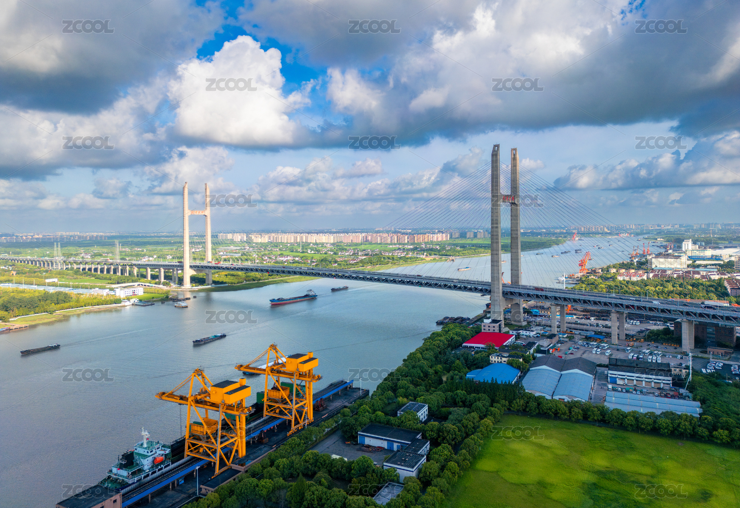 上海市閔浦大橋航拍風(fēng)光
