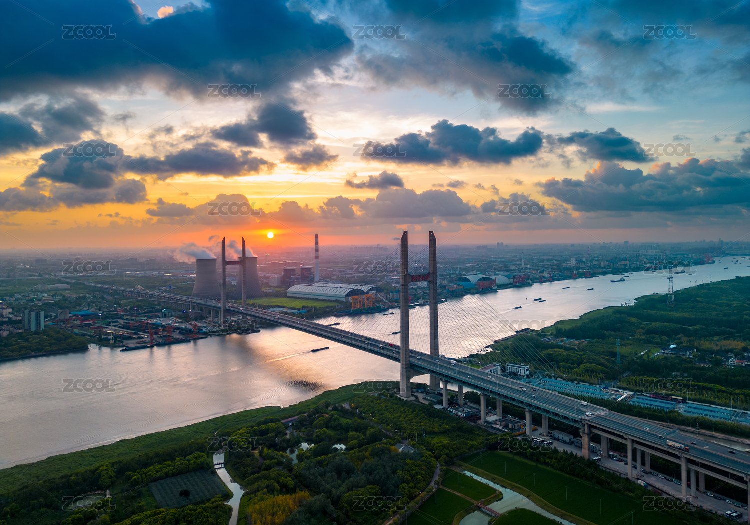 中國(guó)上海閔行區(qū)閔浦大橋落日風(fēng)光