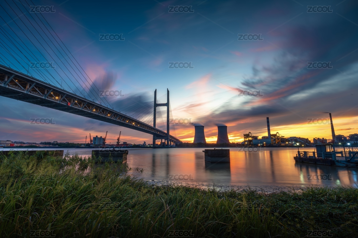 中國(guó)上海閔浦大橋 日落