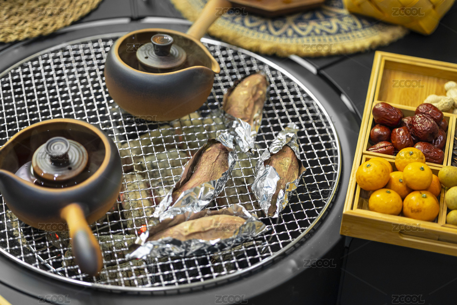 冬季城市休閑生活圍爐煮茶