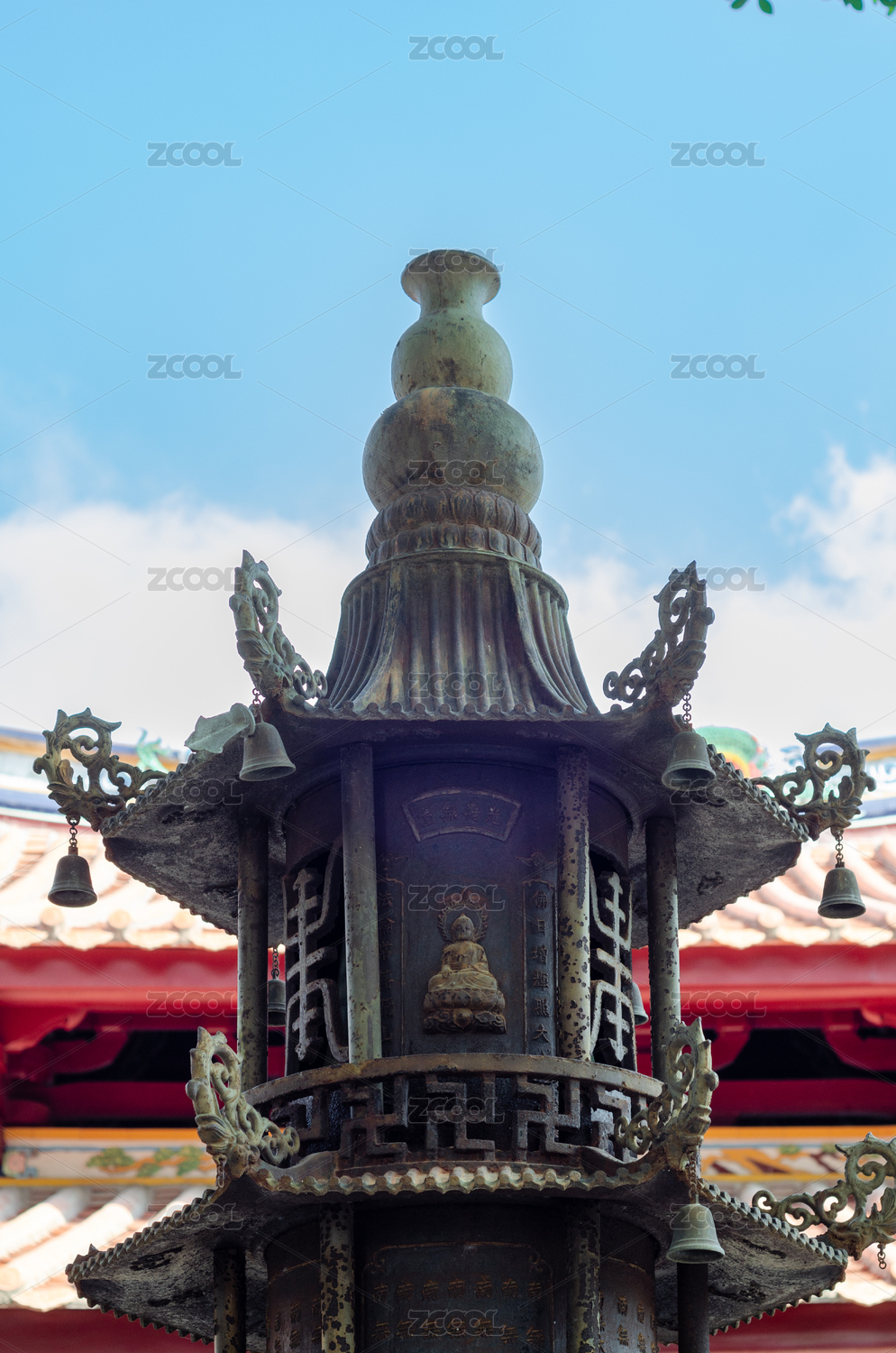 福建泉州承天寺的香爐鈴鐺特寫(xiě)