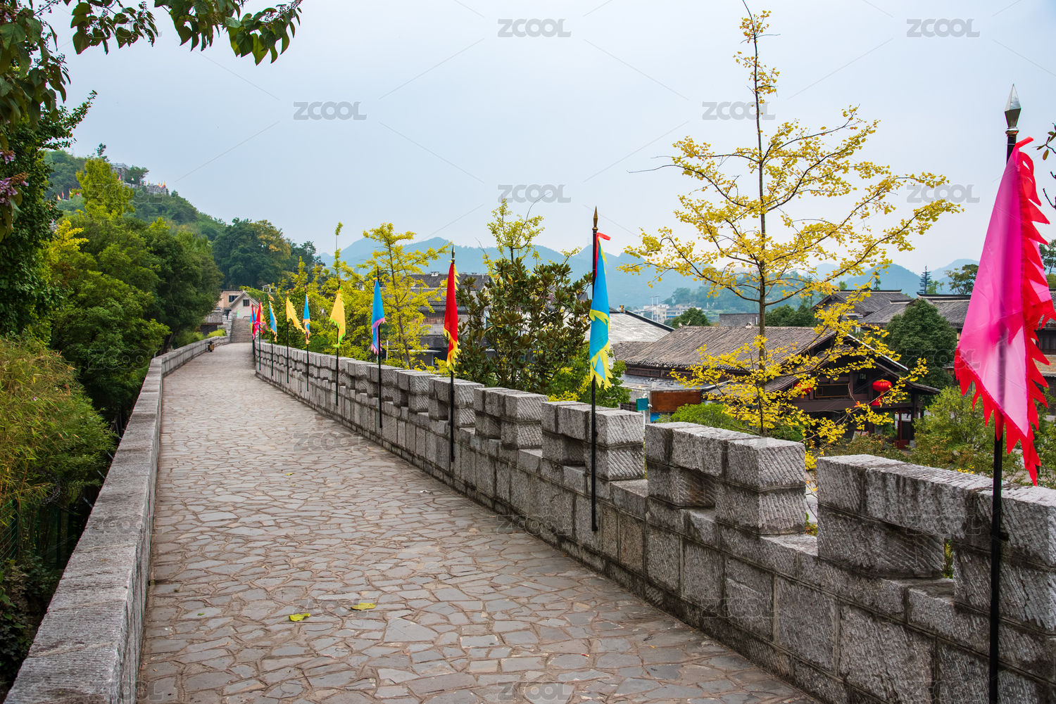 貴州貴陽市青巖古鎮(zhèn)的古城墻上插滿了彩旗
