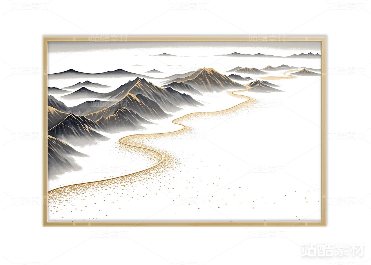 中國風(fēng)抽象鎏金山水畫