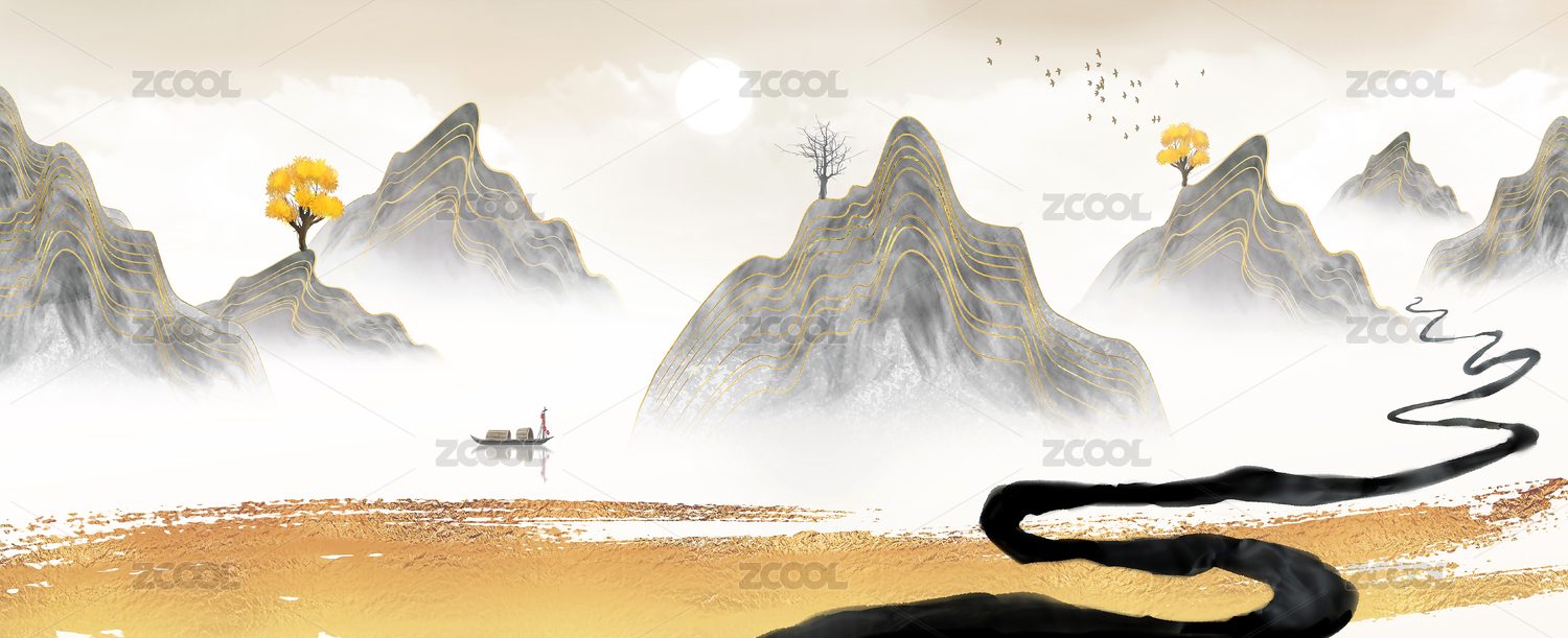 鎏金質(zhì)感的中國山水畫