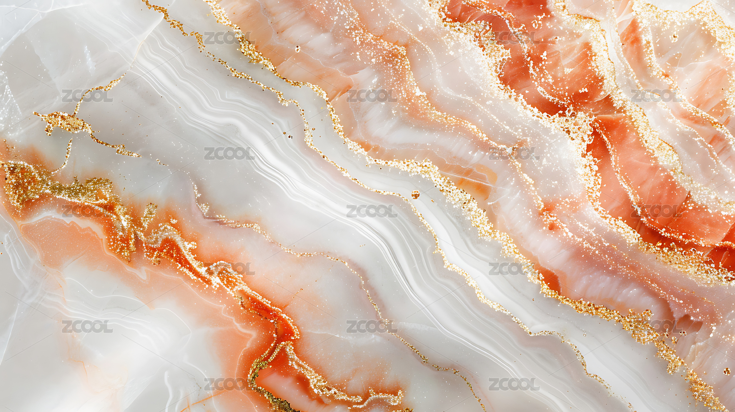 橘白色鎏金抽象流體背景