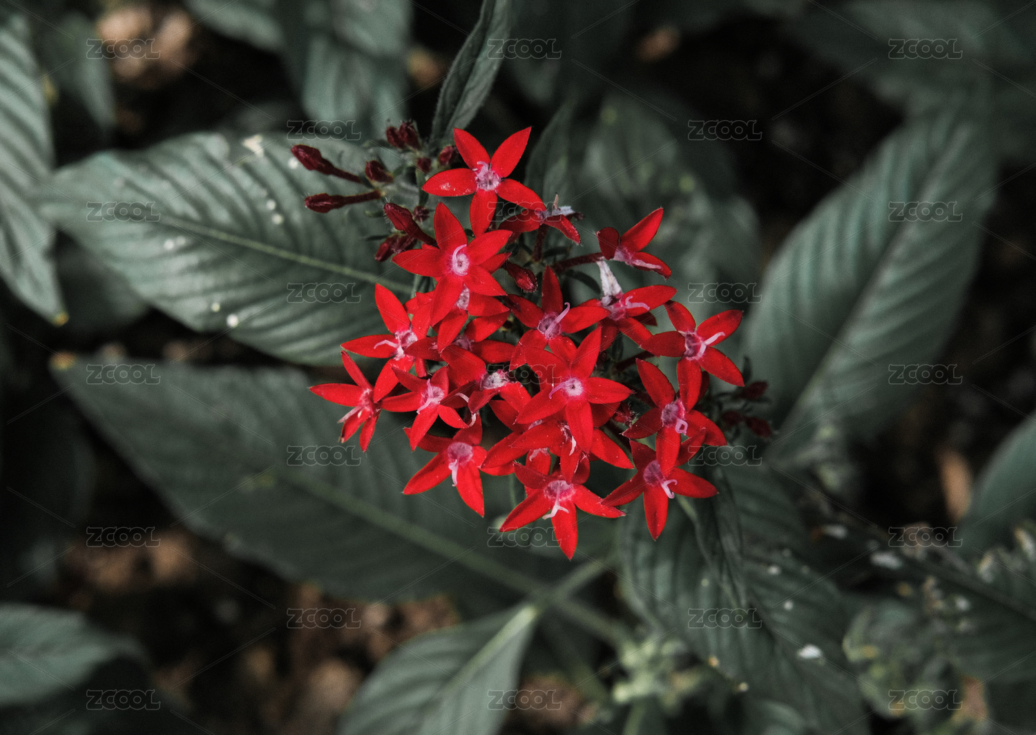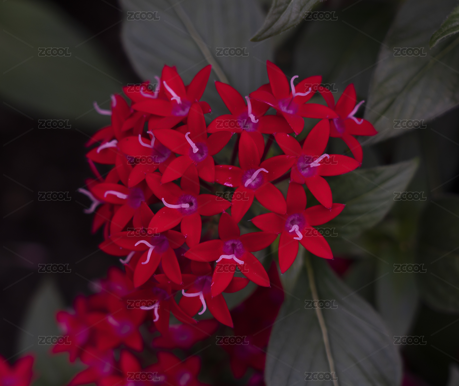 公園里盛開的紅色五星花。