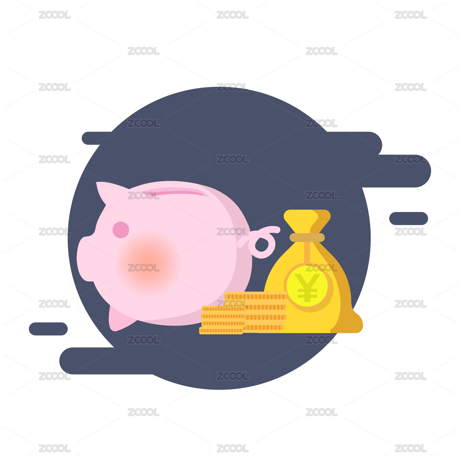 小豬存錢罐和美元硬幣及金融虛擬圖標(biāo)概念