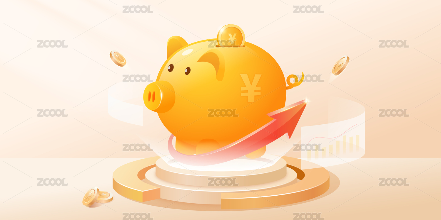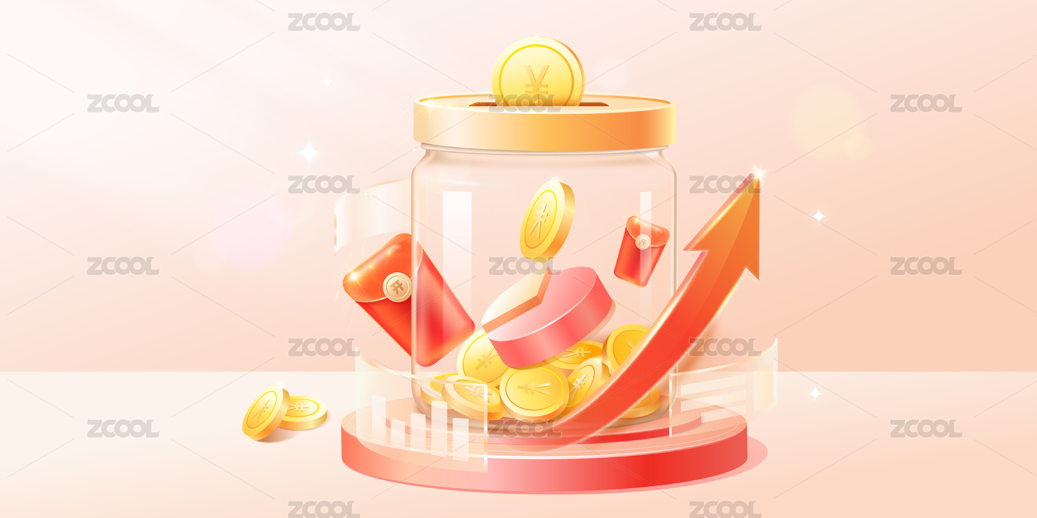 把金幣放進(jìn)存錢罐里和上漲箭頭