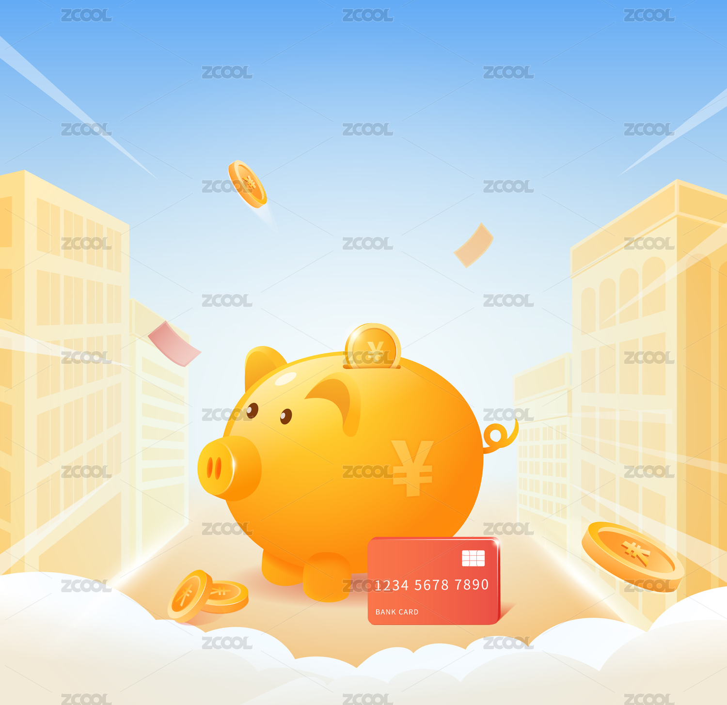 雙手拿著小豬金幣存錢罐活動(dòng)配圖3D場景