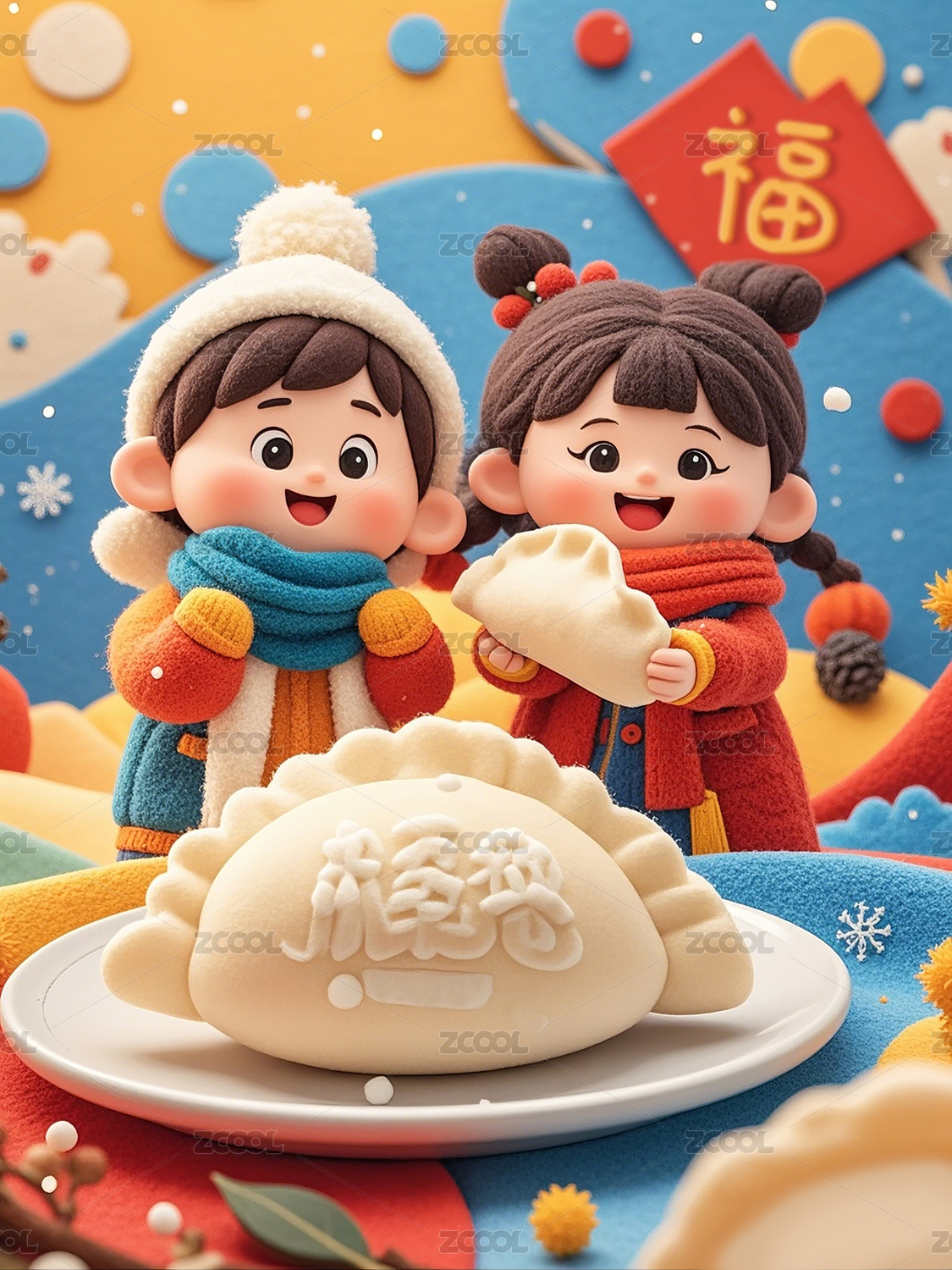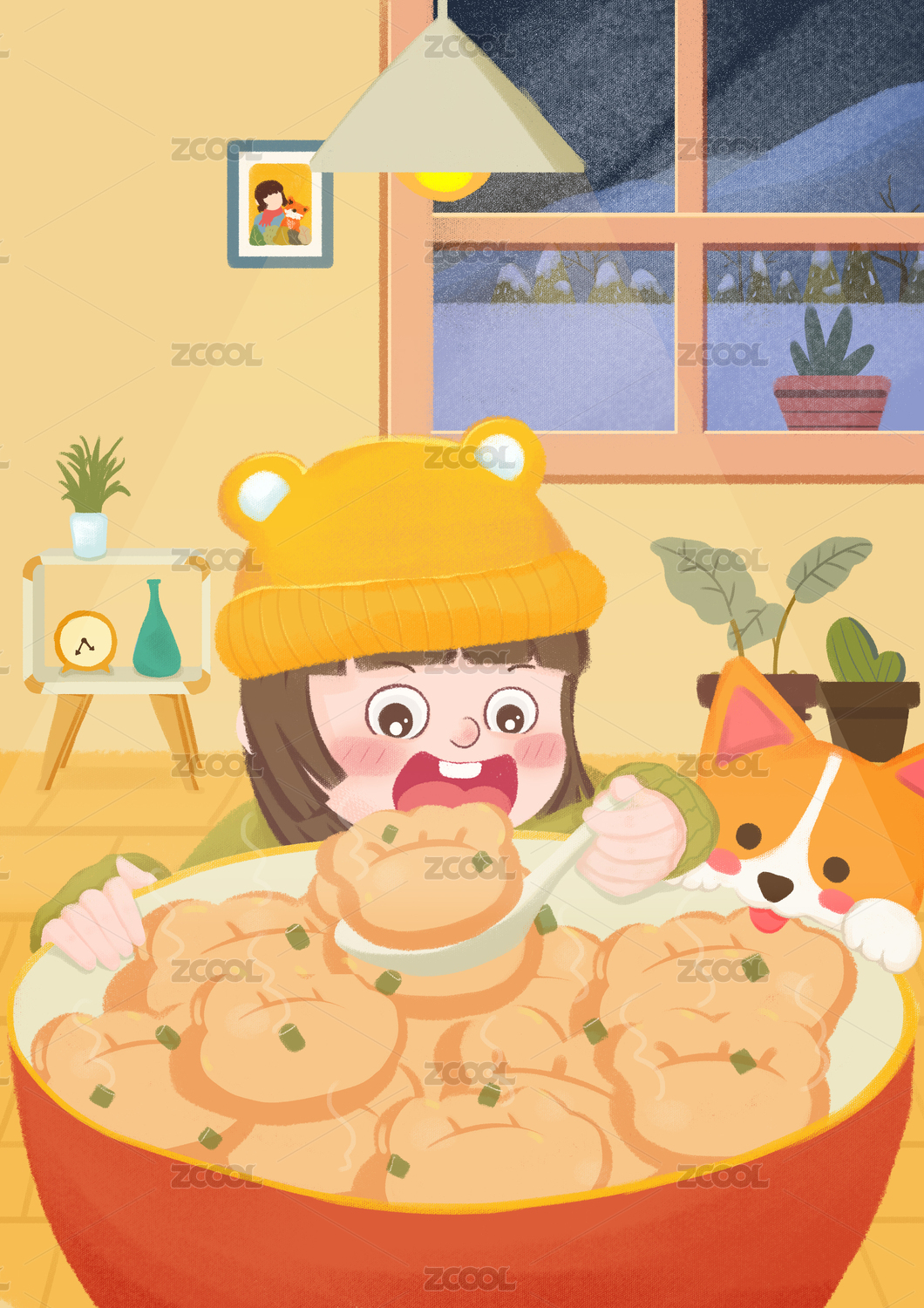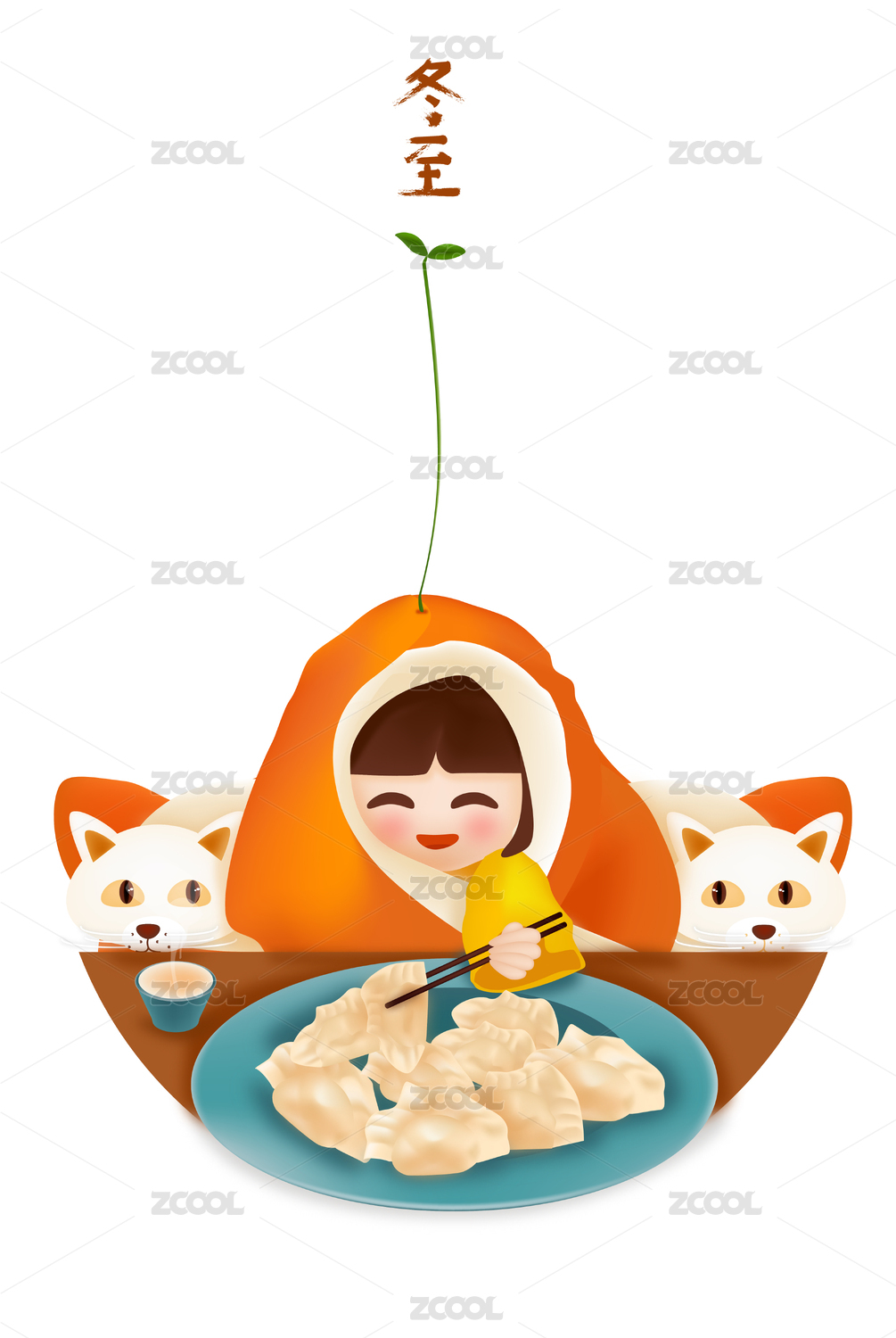 冬至立冬節(jié)氣元旦新年吃餃子插畫(huà)