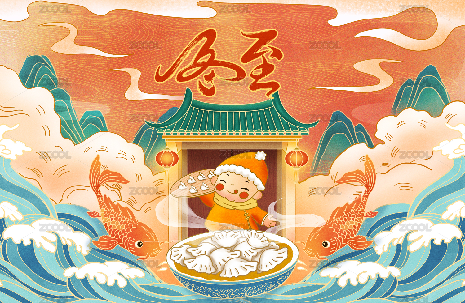 冬至立冬吃餃子國(guó)潮插畫(huà)