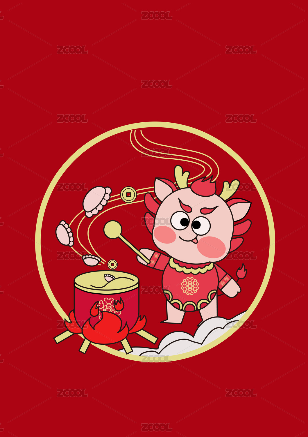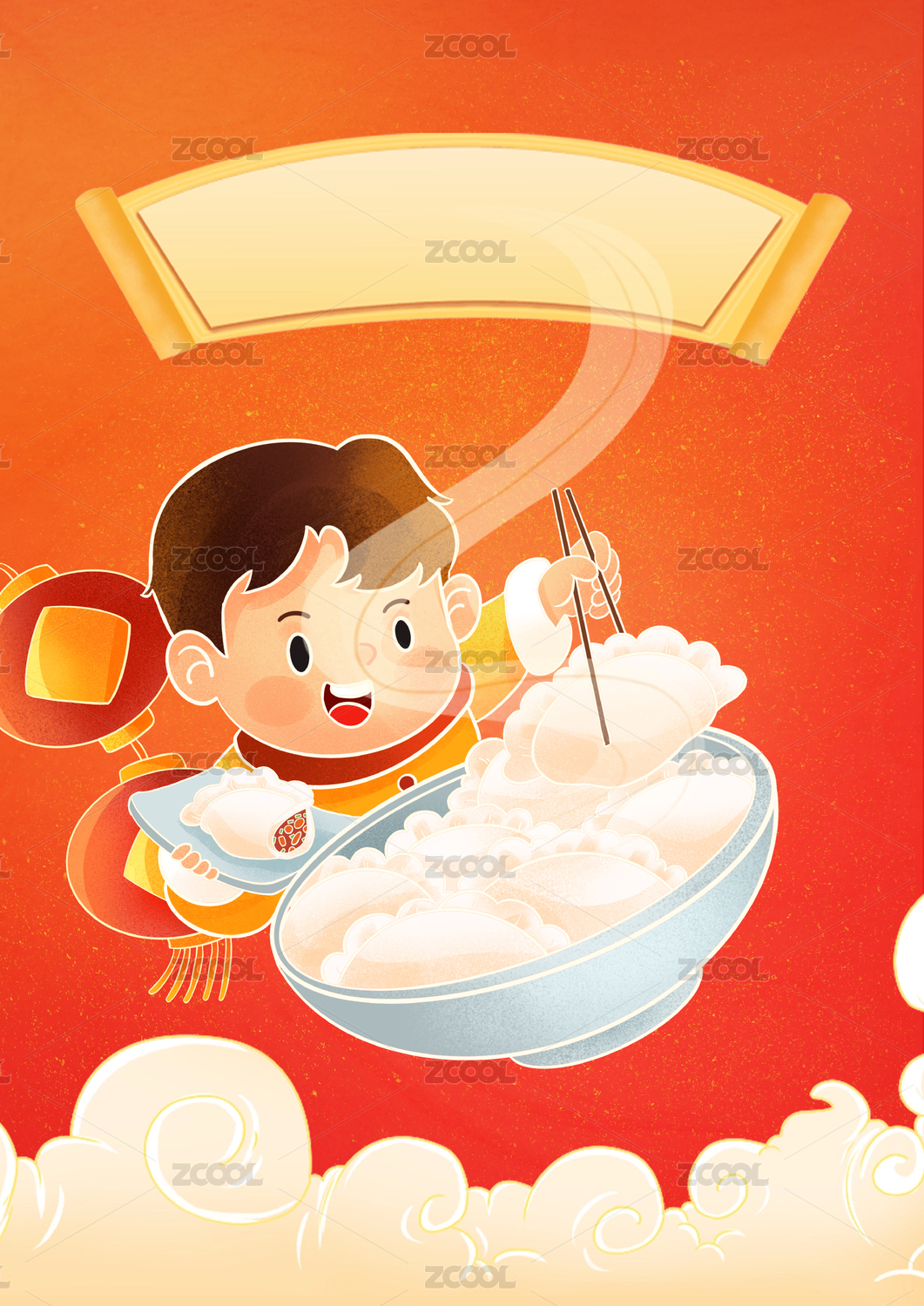 簡(jiǎn)約大氣紅色新春吃餃子節(jié)日插畫(huà)