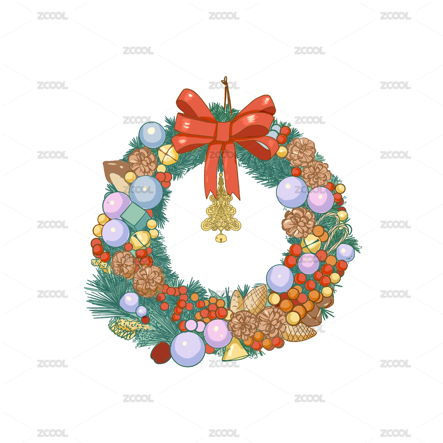 手繪矢量圣誕素材圣誕花環(huán)圣誕節(jié)裝飾