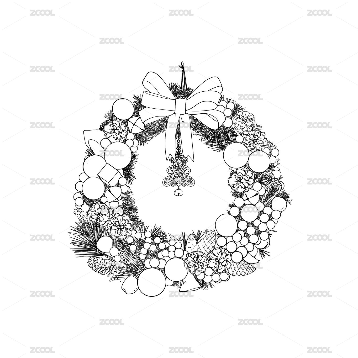 圣誕花環(huán)鑰匙扣-描邊風(fēng)插畫