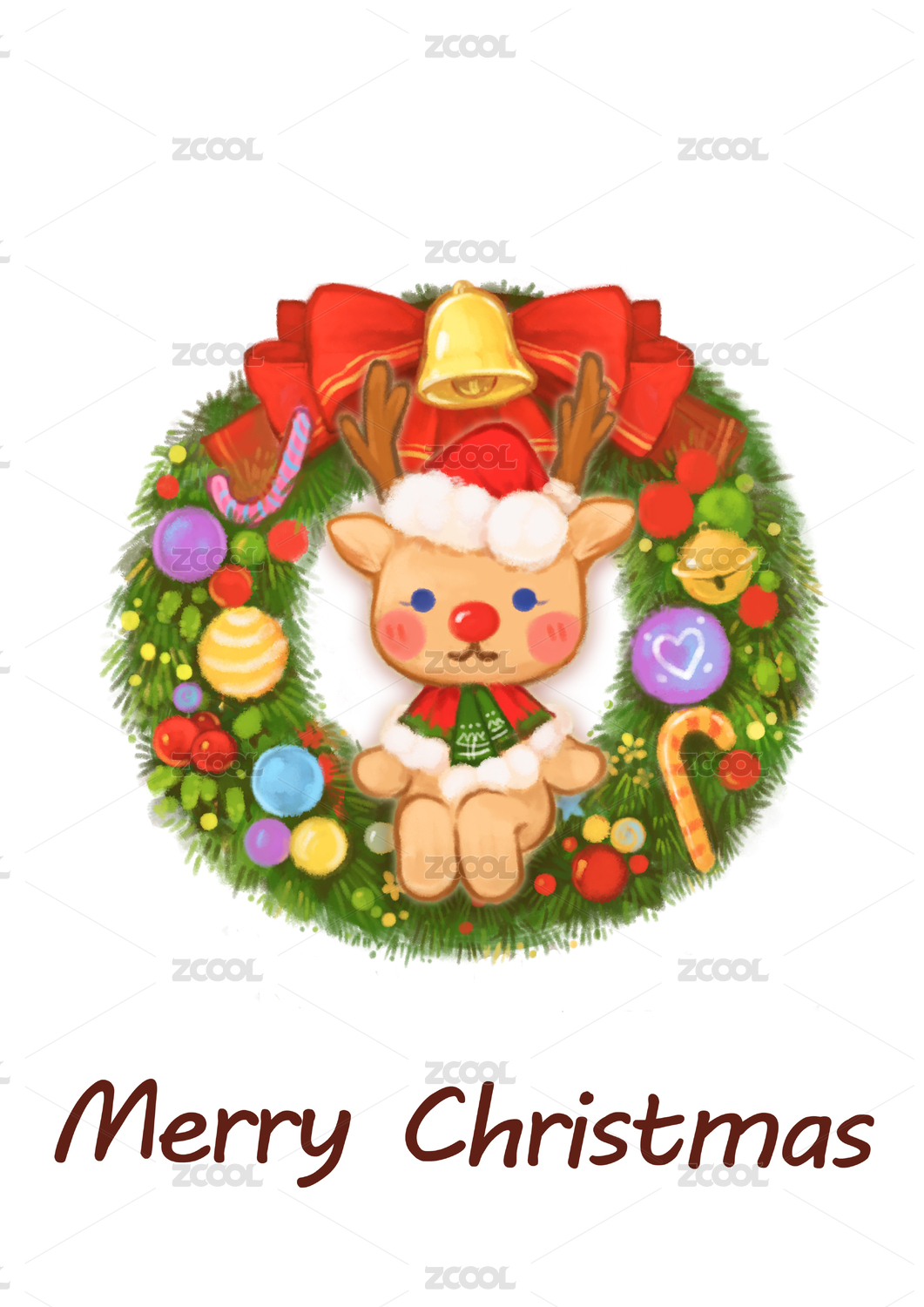 圣誕小鹿坐在圣誕花環(huán)上