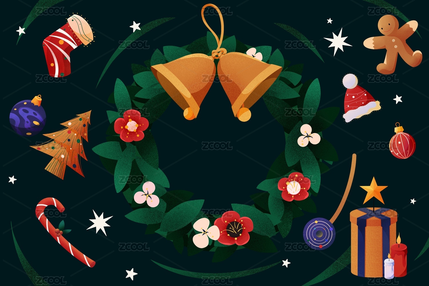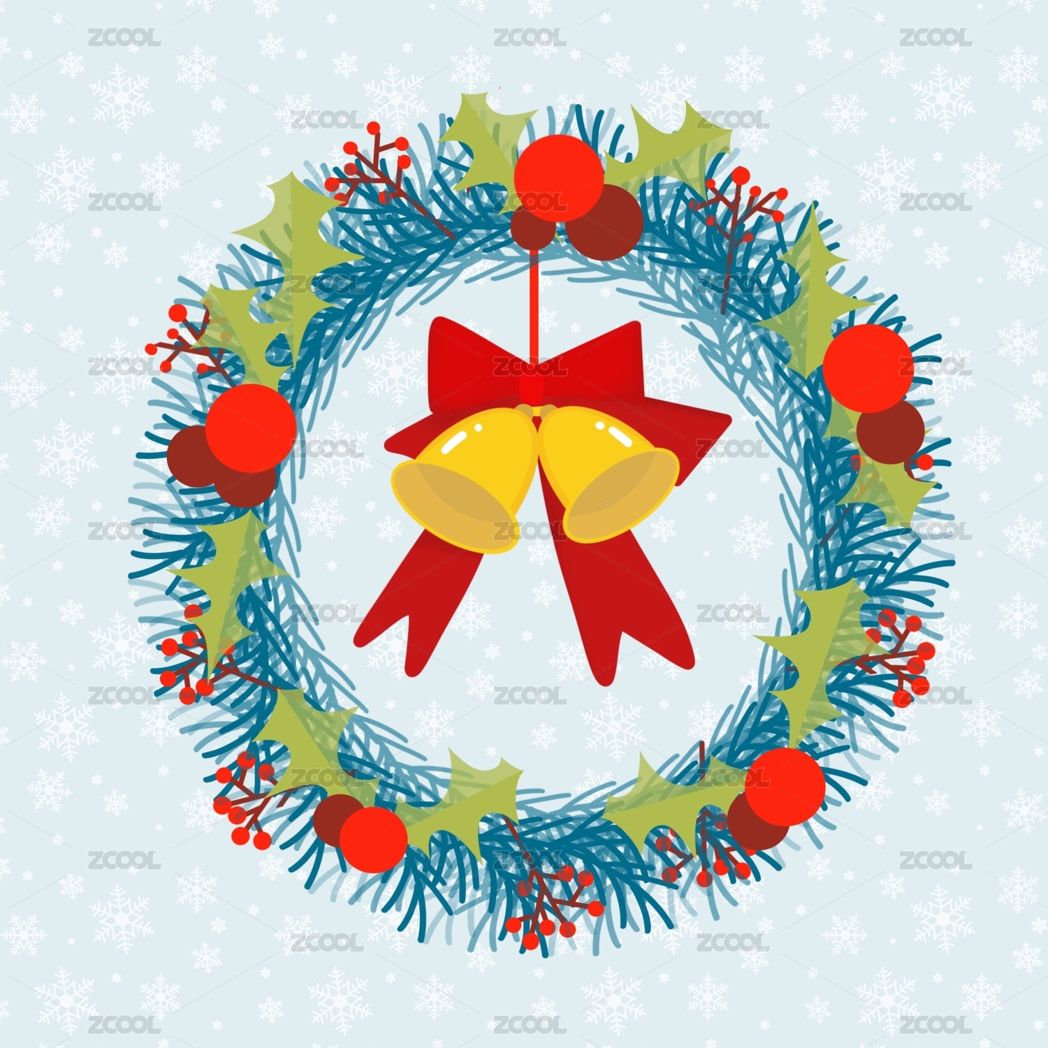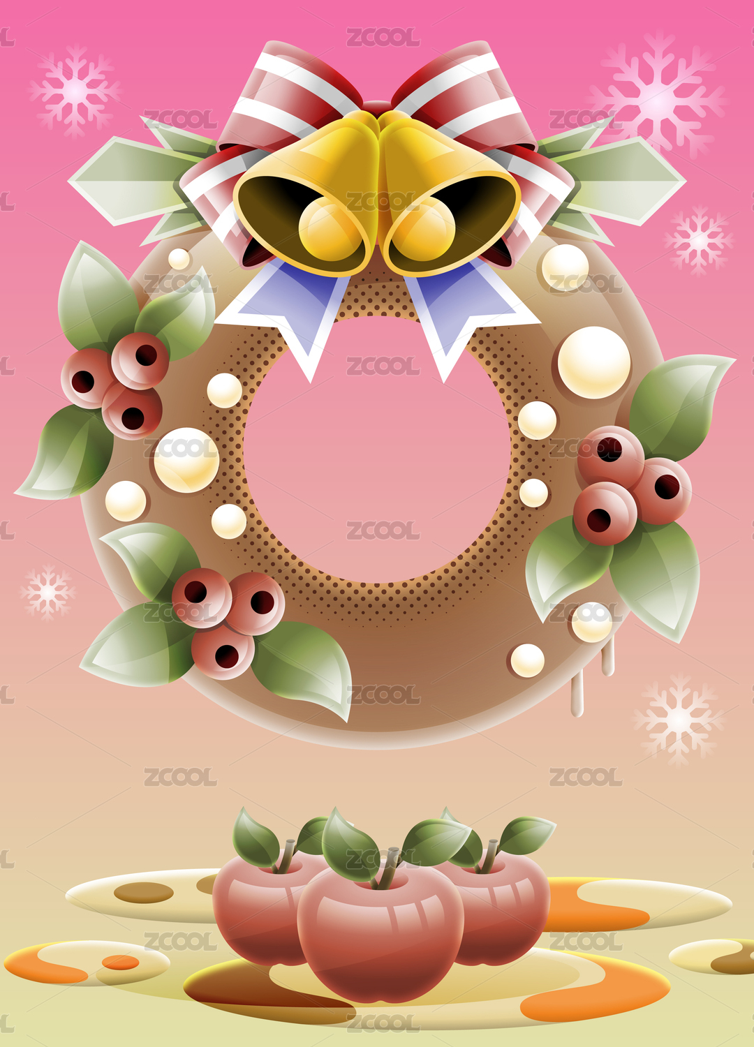 圣誕花環(huán)鈴鐺蘋果插畫