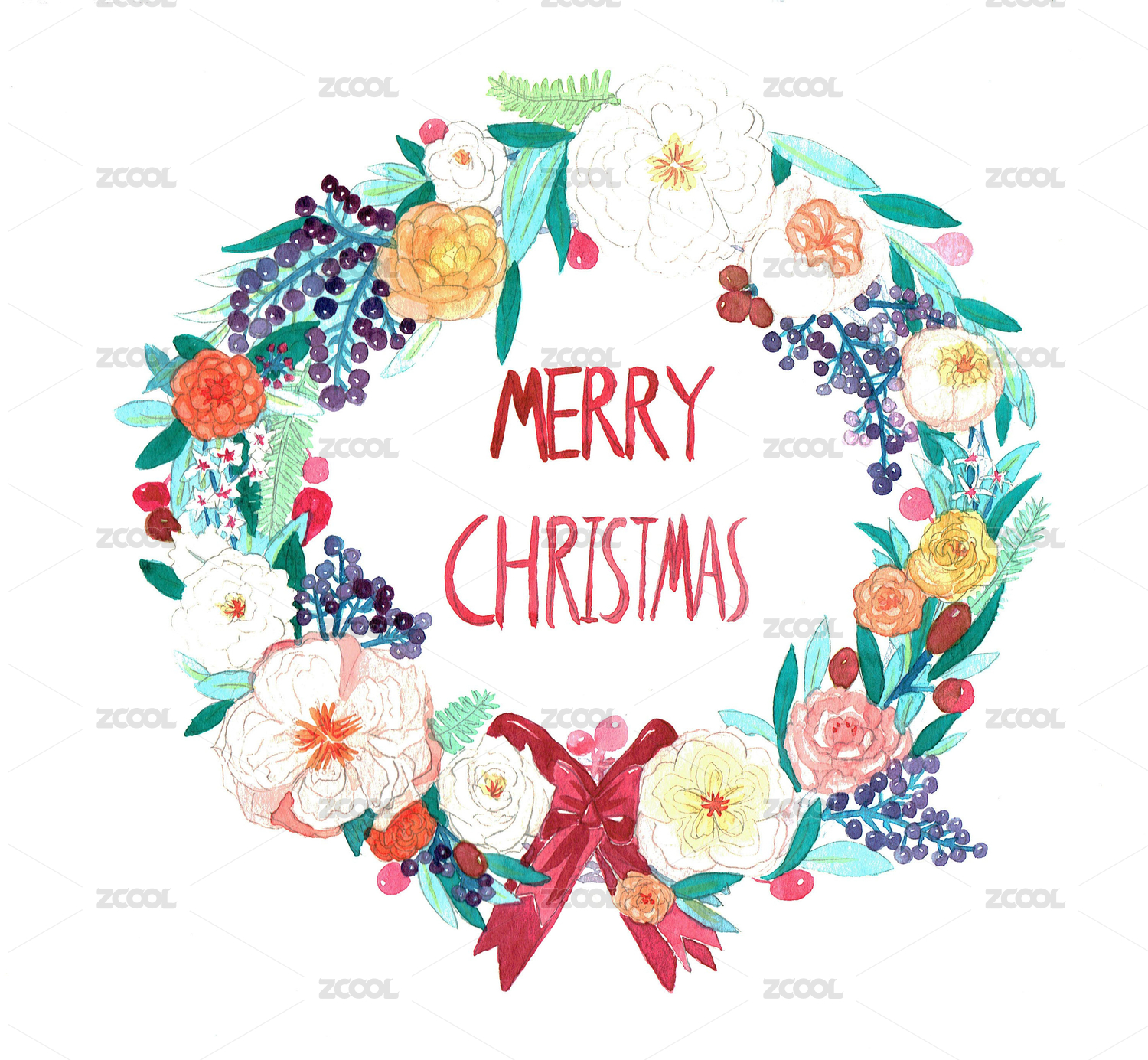花環(huán) 圣誕花環(huán) 水彩 手繪