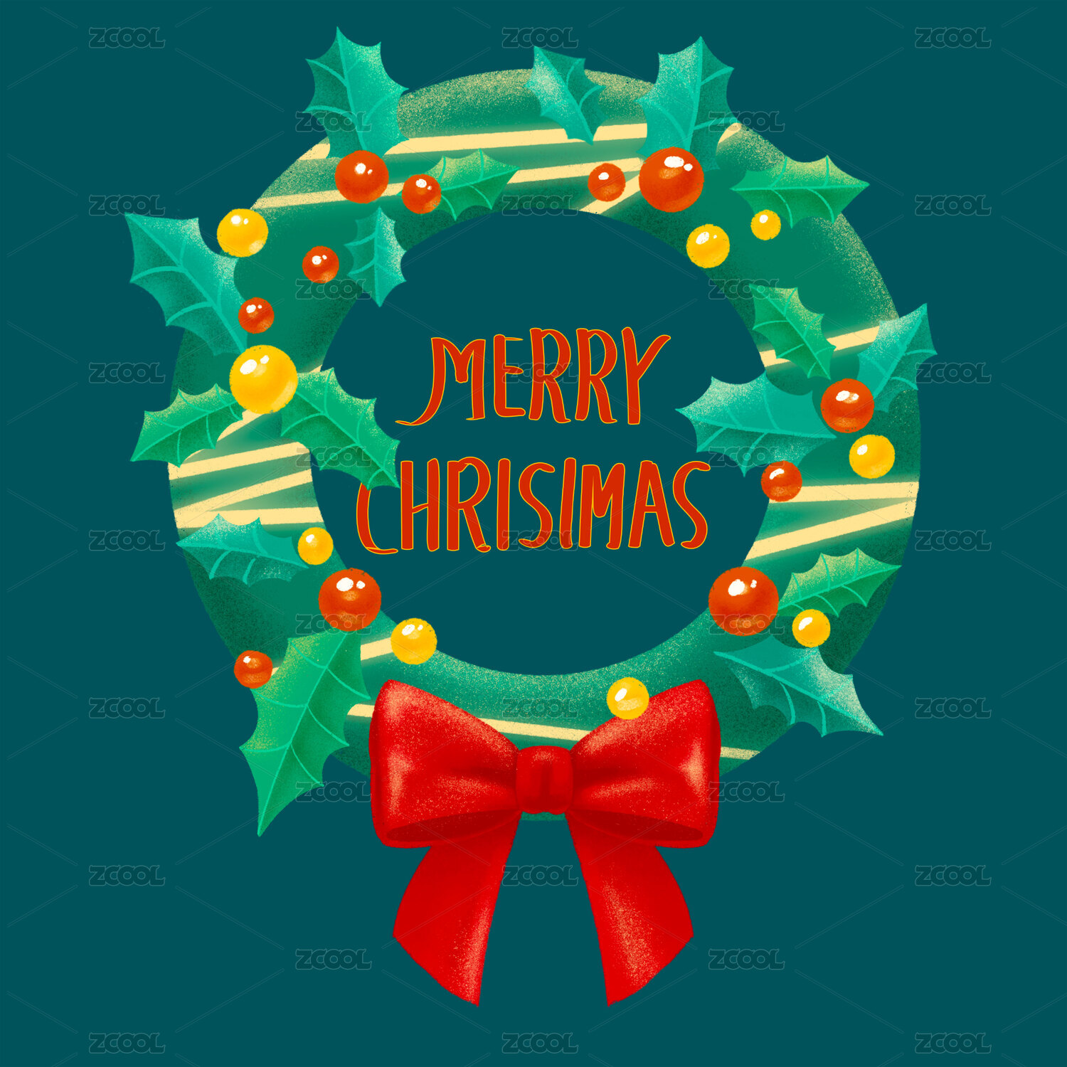 圣誕節(jié)圣誕花環(huán)扁平噪點(diǎn)賀卡卡片包裝插畫