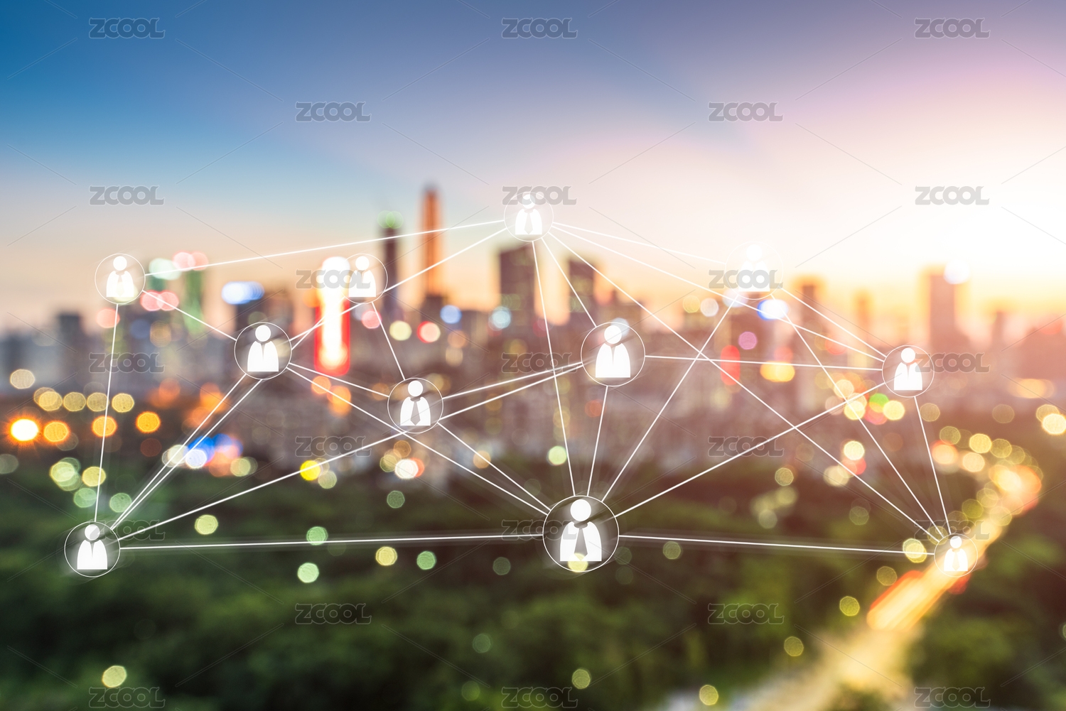 深圳城市風(fēng)光和人際關(guān)系網(wǎng)絡(luò)概念
