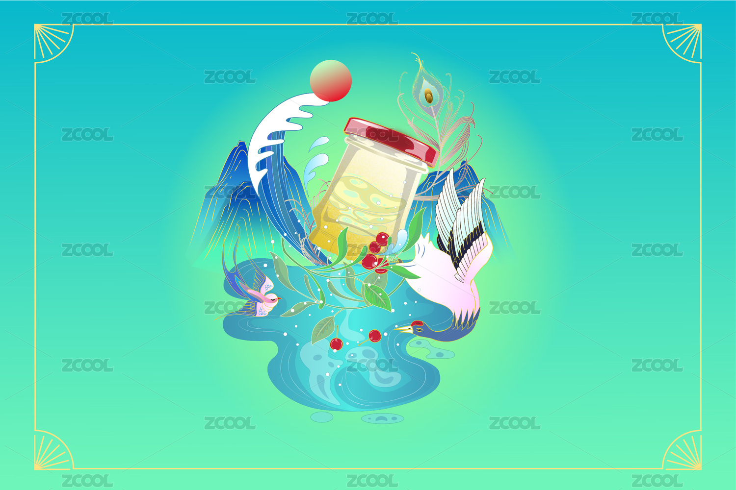 被天鵝環(huán)繞的燕窩產(chǎn)品 國風(fēng)插畫