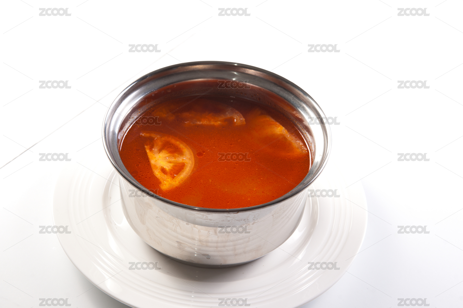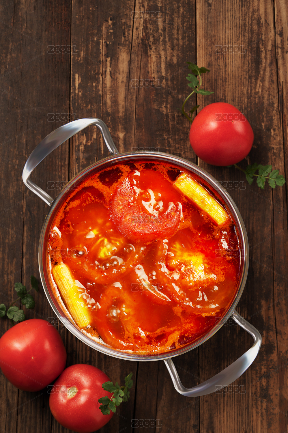 黑色砂鍋里的飛濺的番茄湯鍋湯底