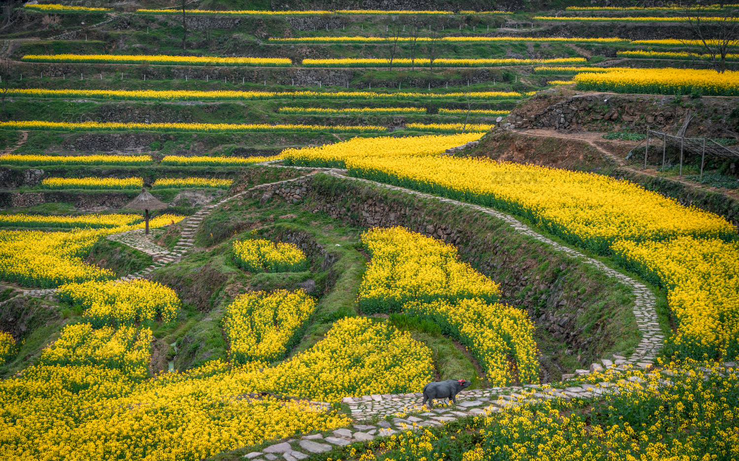 鄉(xiāng)村油菜花農(nóng)田和鄉(xiāng)間小路